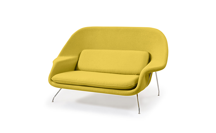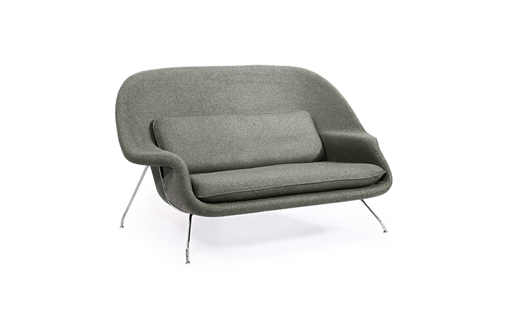Womb Chair 的基本构造是由抛光镀铬或雾面钢管底座,以一体成型的泡棉包覆框架所组成。 Eero Saarinen 设计这张椅子挑战了一般世俗的规则,打破窠臼,树立了新的现代设计和舒适的标准,充分显示他的高超才华。