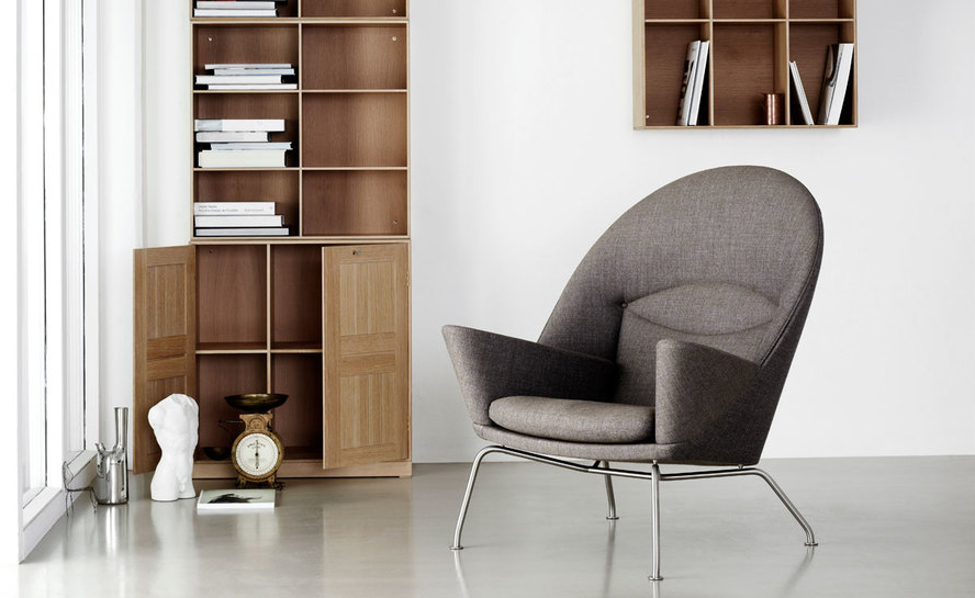 眼睛椅由Carl Hansen & Son与汉斯·j·韦格纳的工作室联合制作,简称CH468。这把椅子是韦格纳在1960年设计的,但之间从来没有在生产。据目前所知,工作室还是原来的样子。在现有椅子的原型上,结合一些照片,我们对它进行生产。CH468是一把雕塑般的安乐椅,背部和颈部支撑提供各种舒服的坐姿。跟韦格纳设计的一样,工匠用木头制作内部框架。拉丝不锈钢的腿部支架,创建了一个平衡,与宽敞的衬垫形成对比。CH468有皮革或织物软垫可选,添加脚凳以达到更好的舒适度。