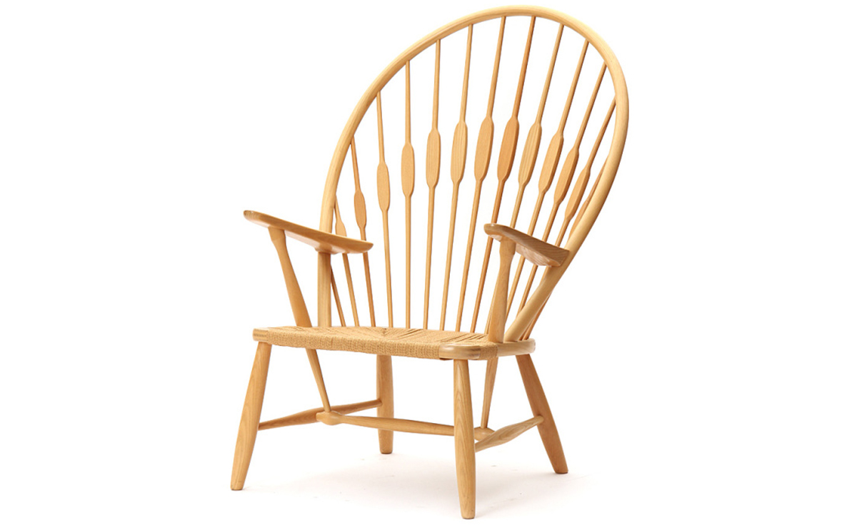 Hans Wegner 的孔雀椅,The Peacock Chair。Hans Wegner 1947年设计(虽然看上去很后现代主义),当时他到哥本哈根不久,离 Johannes Hansen 更近,激发了他的创新。Hans Wegner 善于继承传统,这种继承也不是挖古坟式的,而是很自然,没有压力,获取优点为我所用。孔雀椅起源于温莎椅子(Windsor chair),一种细骨靠背椅,18世纪流行于英美,温莎椅17世纪出现在英国,1726年由宾夕法尼亚的州长 Patrick Gordon 介绍进入美国。
