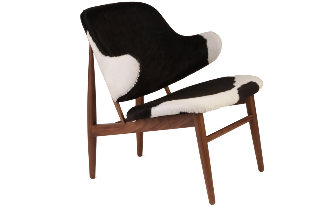 "IB Kofod Larsen设计的这款椅子来源于1950年以及早期由Christiansen and Larsen设计的桦木框架版本,这一款加上了来自Fanny Aronsen的 Kvadrat Balder面料。椅子做工精良,配以铜绿色的框架。"