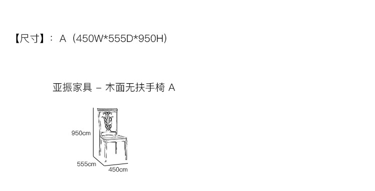 亚振家具 - 木面无扶手 产品尺寸/示意图