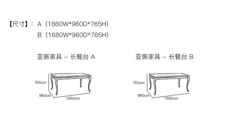 亚振家具 - 长餐台 产品尺寸/示意图