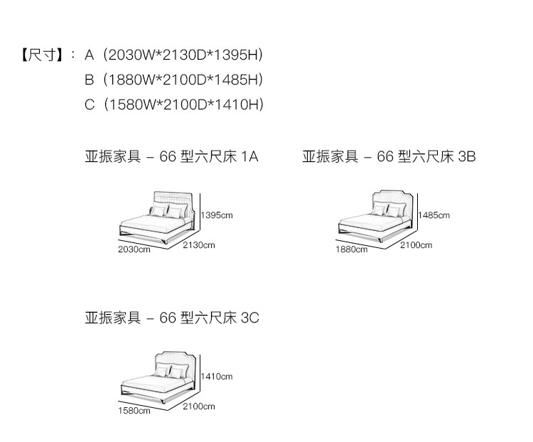 亚振家具 - 66型六尺床 产品尺寸/示意图
