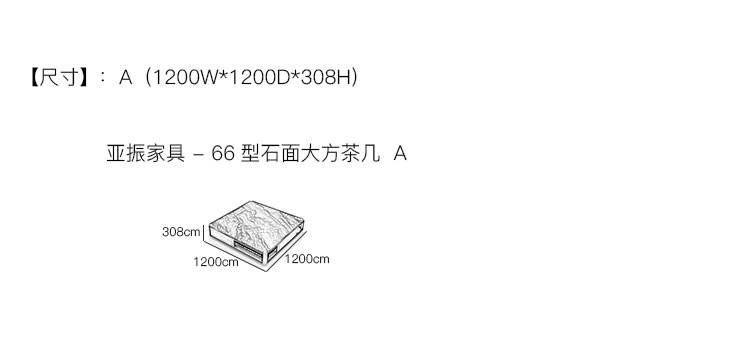 亚振家具 -66型石面大方茶几 产品尺寸/示意图