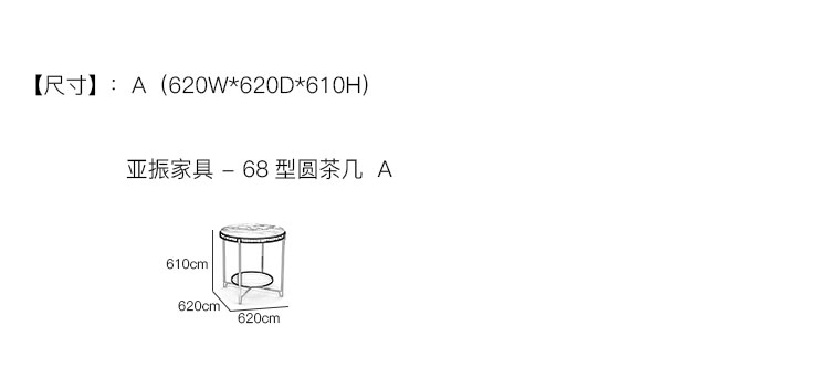 亚振家具 - 68型圆茶几 产品尺寸/示意图
