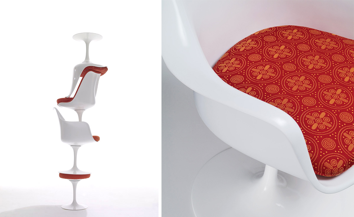 沙里宁郁金香扶手椅设有铸铝底座。外壳是用增强玻璃钢材料完成。座垫是可以可拆卸更换的,有拉链锁扣。
