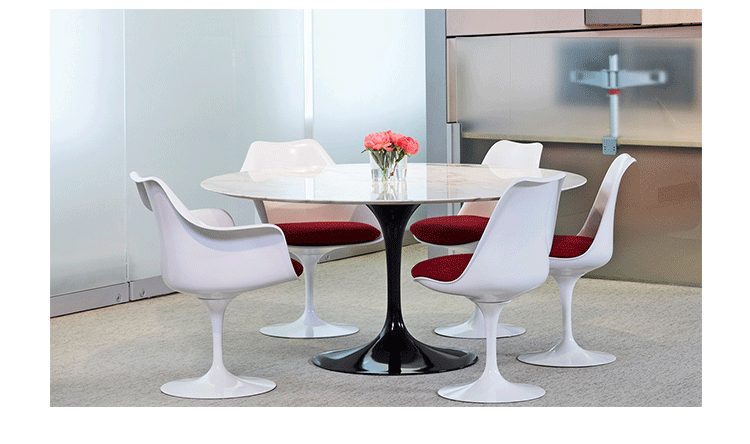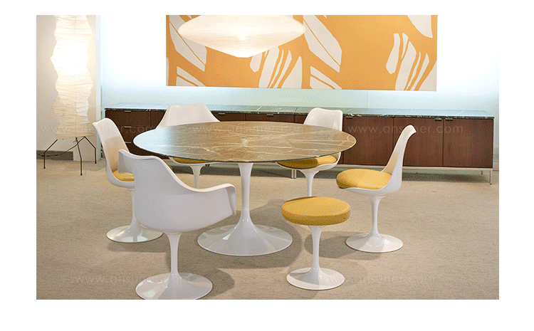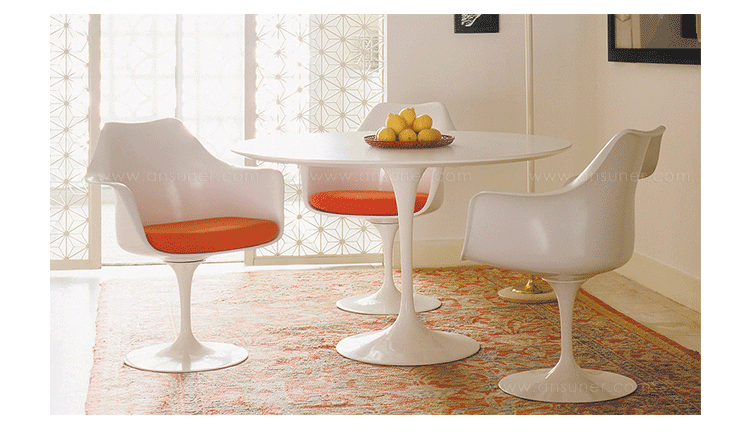 他的设计方法是纯粹的,芬兰出生的艾罗沙里宁追捧出来的基本思想,并将其降低到最有效的结构性解决方案。1956年在它的基础上他设计了郁金香椅,而不是一个特定的形状。 “在任何设计中的问题,应该寻求的下一个最大的事情方面的解决方案。”他说。 “如果问题是椅子,那么它的解决方案必须在其涉及到房间的途中发现......”在郁金香沙里宁实现了他的正规统一的理想:“每一件家具都有一个整体的结构。”1969年赢得了现代博物馆艺术奖,郁金香是沙里宁最具有天才的设计。