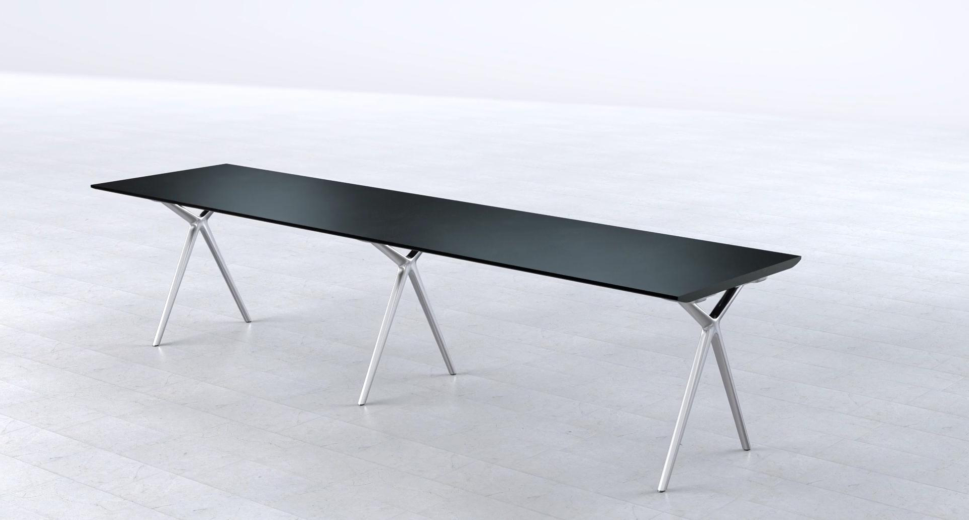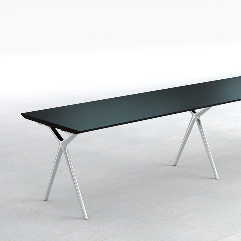 这款Conference-X最大的亮点就是:桌子腿是可以将两个桌面一起快速而轻松地结合在一起,而不需要借助任何工具。而这个专利技术的的连接关键是:桌子腿顶部处在固定锁,桌底有锁扣,以此保证绝对安全和稳定。这也很好的解决了会议台的多样性:从个人的工作桌到成排的会议桌,桌子形状、大小、都可以通过脚架来进行拼接.