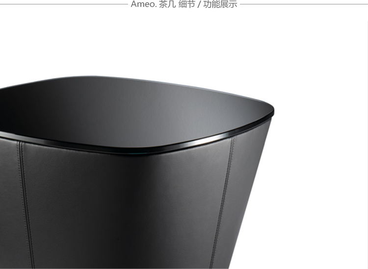 Ameo系列茶几与Ameo系列休闲椅相匹配。拥有黑色和透明两种颜色和不同尺寸的玻璃桌面,桌身用皮革包裹着。完美的与Ameo系列休闲椅搭配。