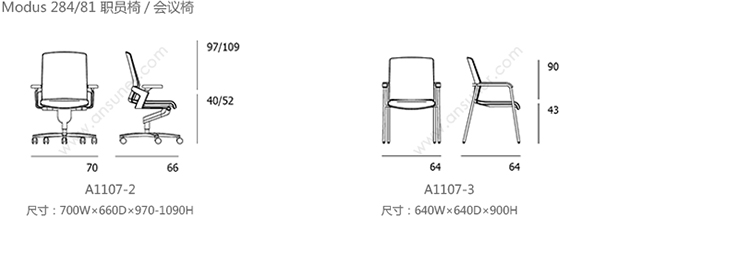 ON 175/71 职员椅/会议椅 系列尺寸/示意图