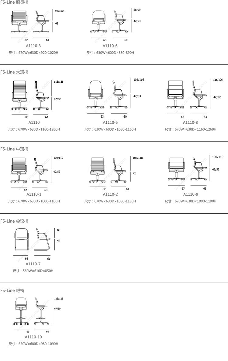 FS-Line 220/8 职员椅 系列尺寸/示意图