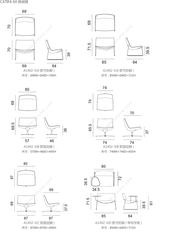 Catifa 60 休闲椅 系列尺寸/示意图