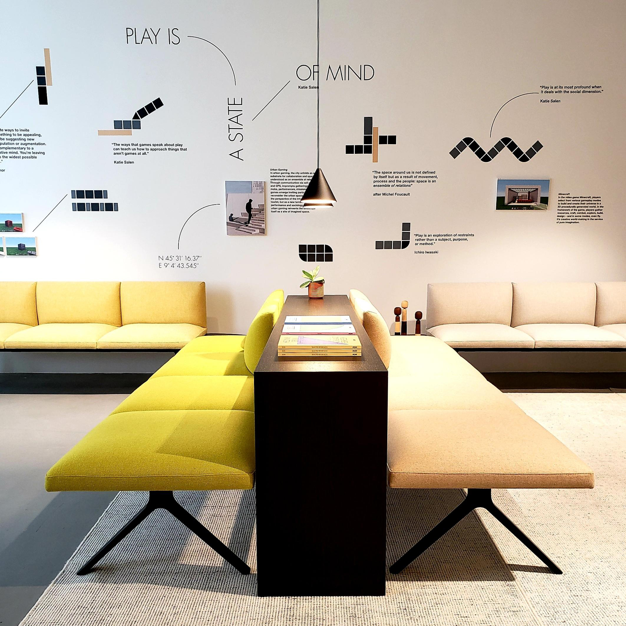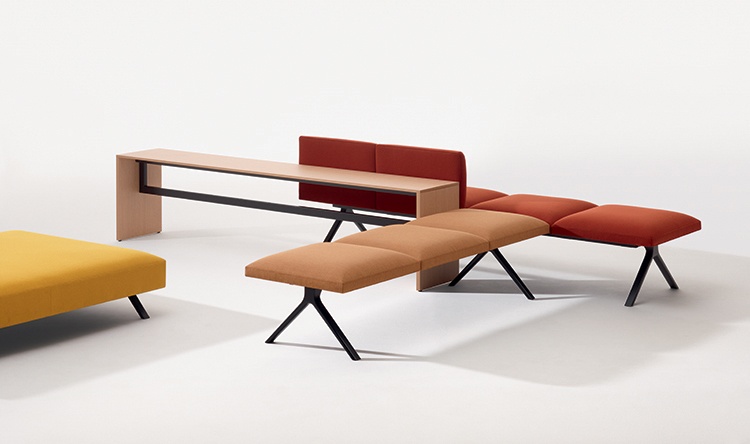集合的岛屿。活动的星座图。kiik是为进入和离开、等待和做之间的空间而创建的。这种由座椅、桌子、脚垫和控制台组成的模块化集合,以各种配置的图形形式创造了工作、聚会或放松的时刻。