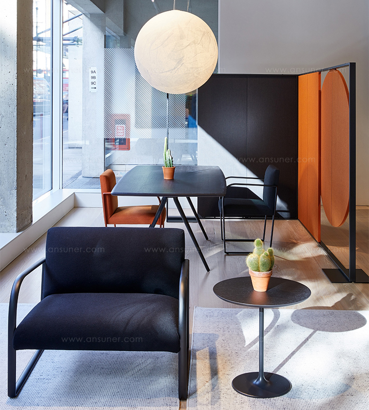 Arcos系列在形式和背景上都反映了其经典的灵感来源。该系列以公共空间为设计理念,配有椅子,休闲椅和沙发,全部配有扶手,可容纳休息室,餐厅和候诊室。 Arcos旨在与Steeve,Parentesit和Cross对话,为休息,放松和社交创造舒适的环境。特别注重颜色定制,可以在室内装潢和哑光金属中创造出天鹅绒般的墨色调单色,表达低调的表达。