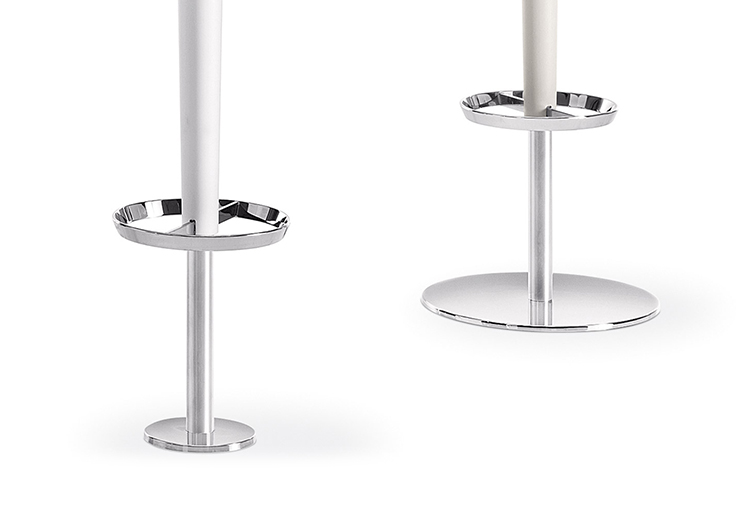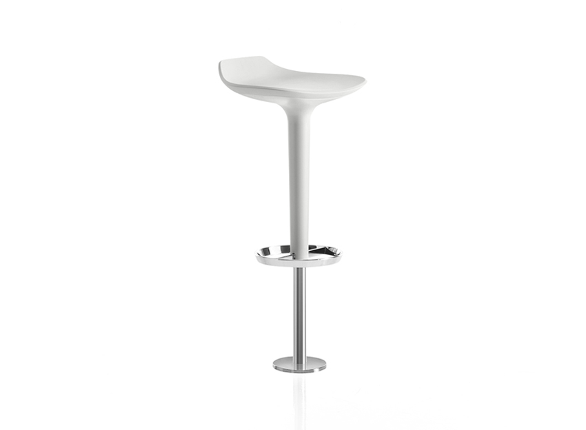 Babar凳子采用符合人体工程学的聚氨酯座椅制成,有多种颜色和双色组合。 软垫版本,座椅覆盖面料,皮革,人造皮革或客户自己的面料,配有靠背。 底座采用不锈钢制成,带有拉丝或镀铬表面,有固定,地板固定和可定制高度(65至77厘米)或高度可调的版本