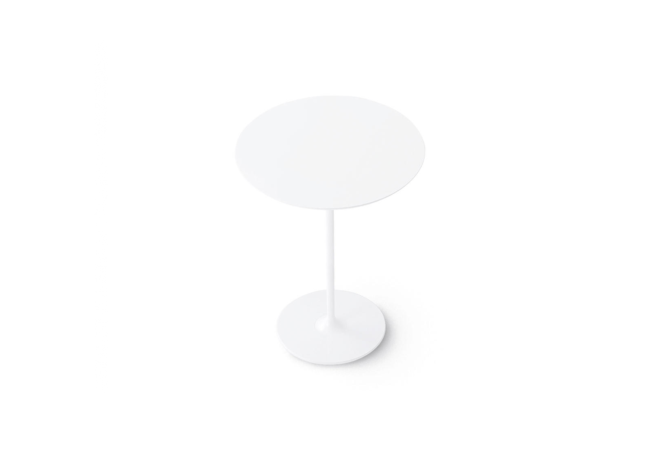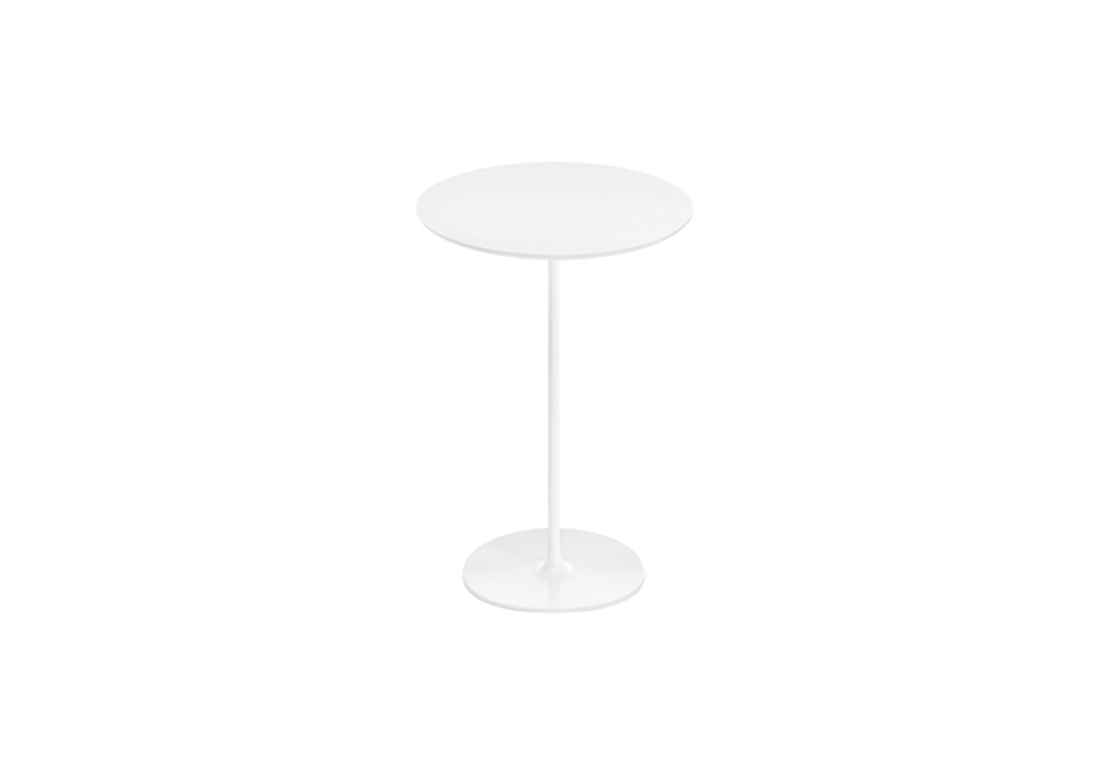 高脚台为圆形底座,白色有光泽或黑色哑光粉末涂层钢,顶部为白色压花MDF(厚2.5厘米)或层压板FenixⓇ(厚2,6厘米),有不同形状和尺寸(方形,圆形)。 身高105厘米。