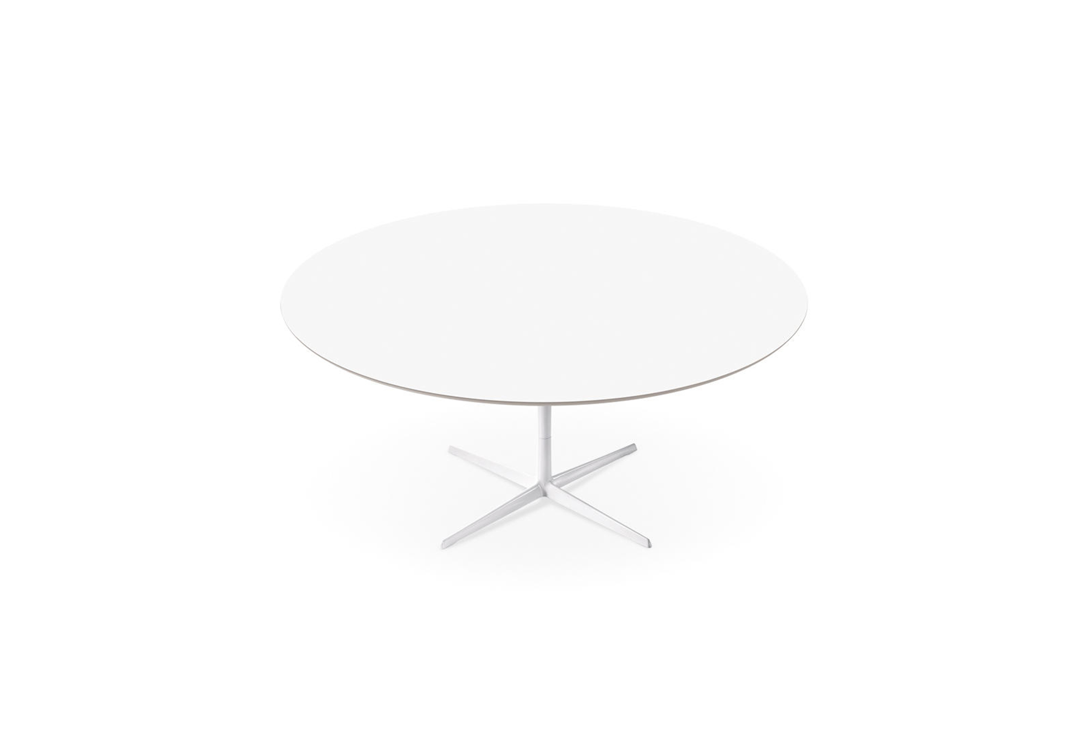 咖啡桌粉末涂层铝4路基座和椭圆形或圆形顶部白色压花MDF(厚2.5厘米)或层压板FenixⓇ(厚2,6厘米)。高度:35厘米。