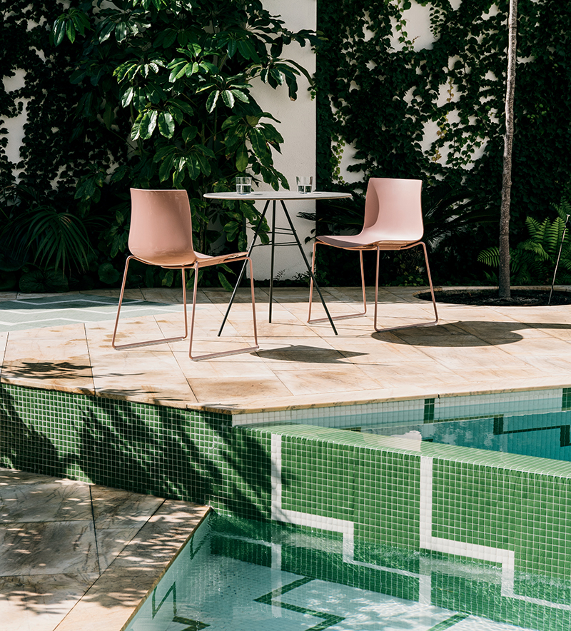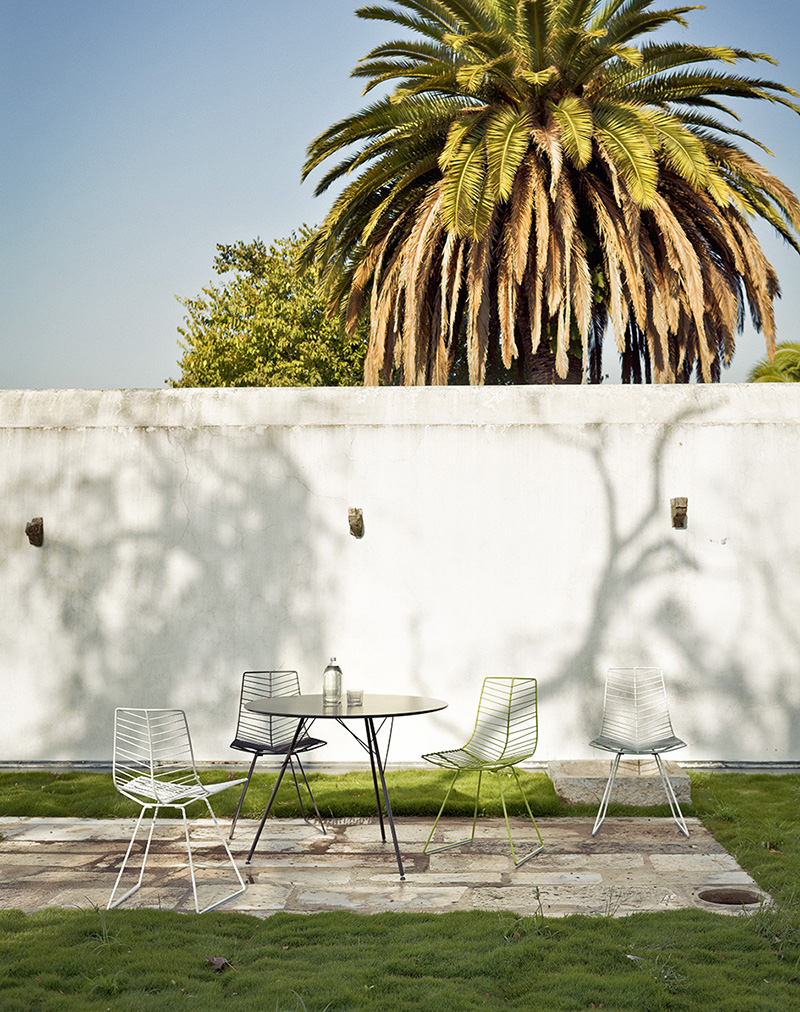 椅子,可堆叠的椅子,休息室,凳子和桌子。椅子采用哑光粉末涂层钢制成,白色,绿色或摩卡。可拆卸的聚氨酯垫可用于室内和室外。 Leaf桌子非常适合在工作或家中放松身心,满足那些喜欢基本设计和轻松存在空间的人们的需求,是Leaf椅子的理想伴侣。