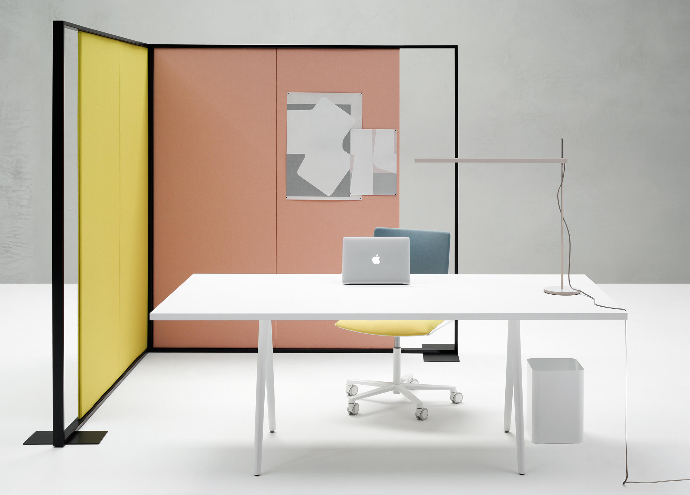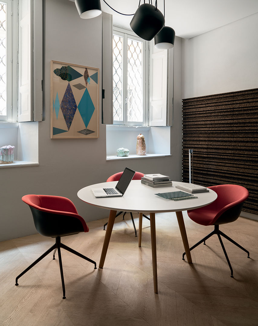 Meety系统可广泛定制,具有桌面形状选项,以及从层压MDF到FENIXNTM®,从木材到玻璃的各种材料。圆形(直径120厘米),正方形(120X120厘米)和矩形形状(从70X140厘米开始)被设想用于大型座椅环境,而柔软和流动的肥皂形状具有独特的存在感和吸引力。创建梯形桌面形状是为了响应协作工作环境,并且可以组合成不同的配置以在工作场所创建私人空间或开放性。