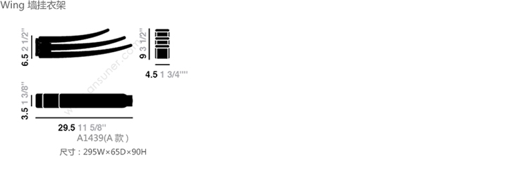 Wing 墙挂衣架 系列尺寸/示意图