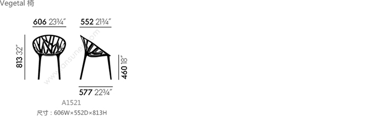 Vegetal 餐椅 系列尺寸/示意图
