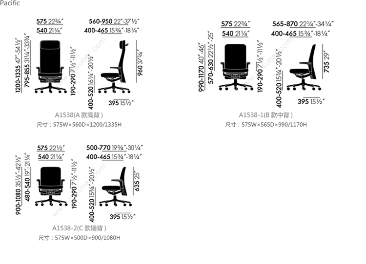 Pacific 中班椅 系列尺寸/示意图
