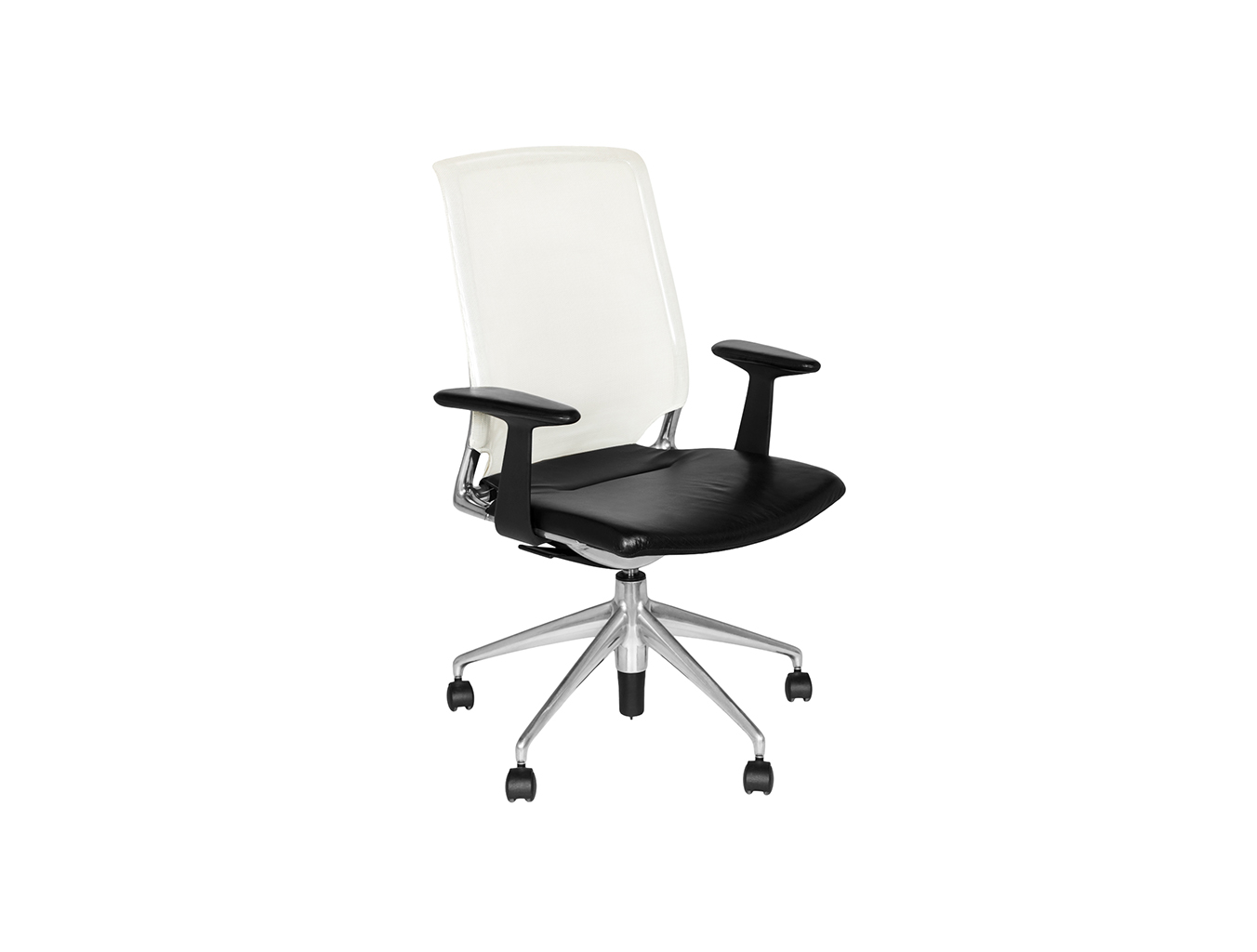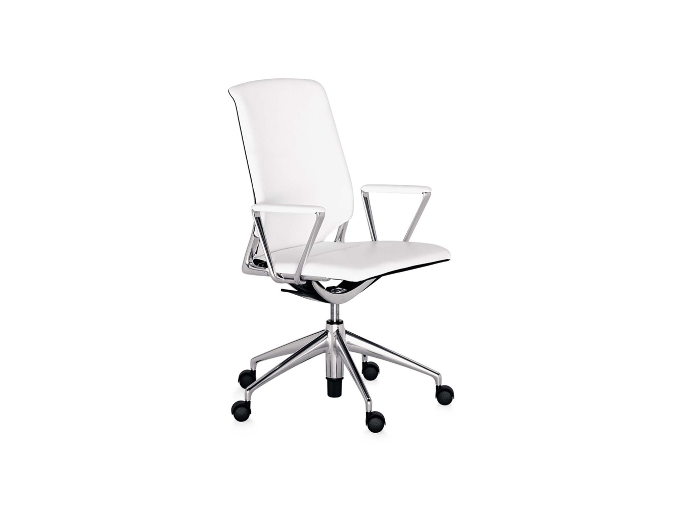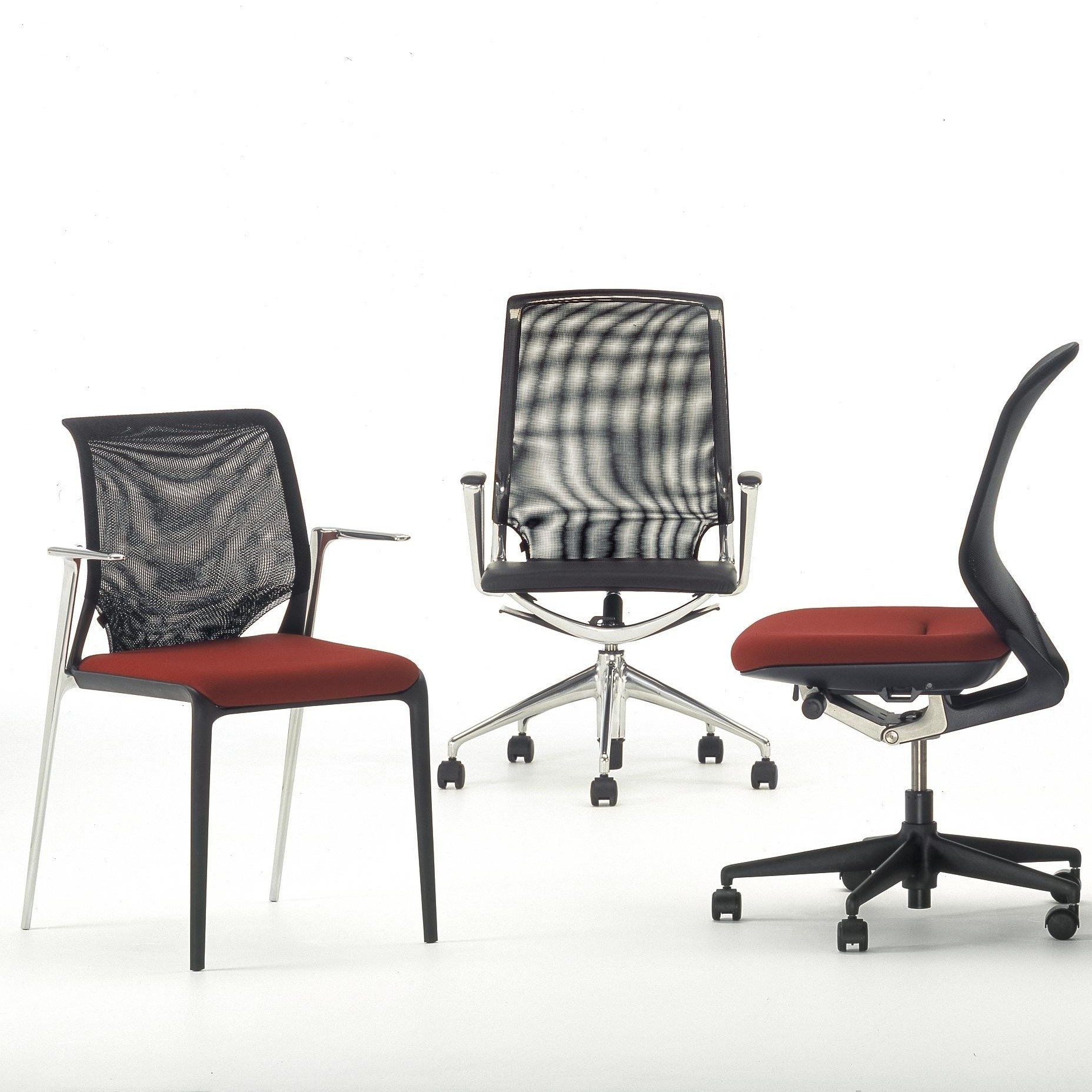Meda Chair代表舒适,技术和美学的最佳组合。 其同步运动及其倾斜和可锁定靠背与座椅衬垫和优雅的装饰元素相结合,为用户提供卓越的舒适感。 座椅的装饰有皮革或织物可供选择,而靠背则可选择皮革或网眼织物。