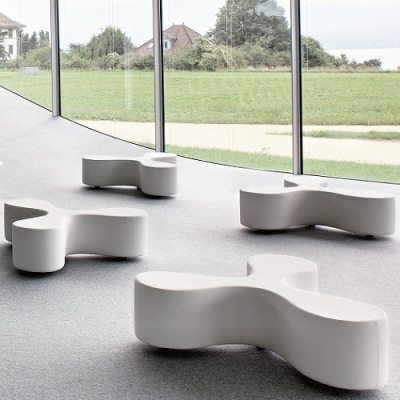 花是一个长凳,有一个细长的中心和花瓣形状的座位设计,让人联想到三叶草或风格化的花朵。它舒适地容纳了至少三个人,他们要么从事交流,要么面对彼此,在孤独中放松。