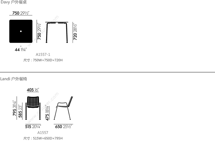 Davy 户外餐桌 系列尺寸/示意图