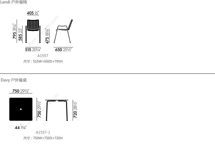 Landi 户外餐椅 系列尺寸/示意图