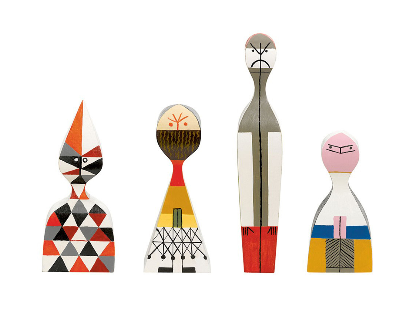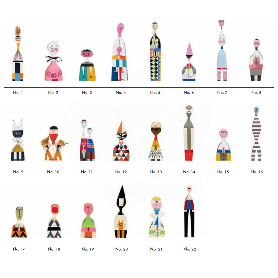 Alexander Girard的木制娃娃是一个代表人类和动物角色的大型木制家族。 吉拉德于1953年设计了他们作为圣达菲家中的装饰物品。 这些原件是维特拉设计博物馆馆藏的吉拉德庄园的一部分,作为当前重新版本的模型。 精确地复制到最后的细节,许多不同的木制娃娃今天仍然是手工制作和绘制的,就像Alexander Girard的复古作品一样。 即使它们之间的差异非常微小:每个木制人物都是独特的个性化产品,真正独一无二。