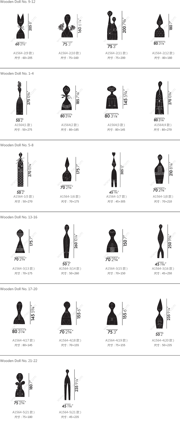 Wooden Doll No.9-12 系列尺寸/示意图