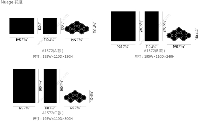 Nuage 花瓶 系列尺寸/示意图