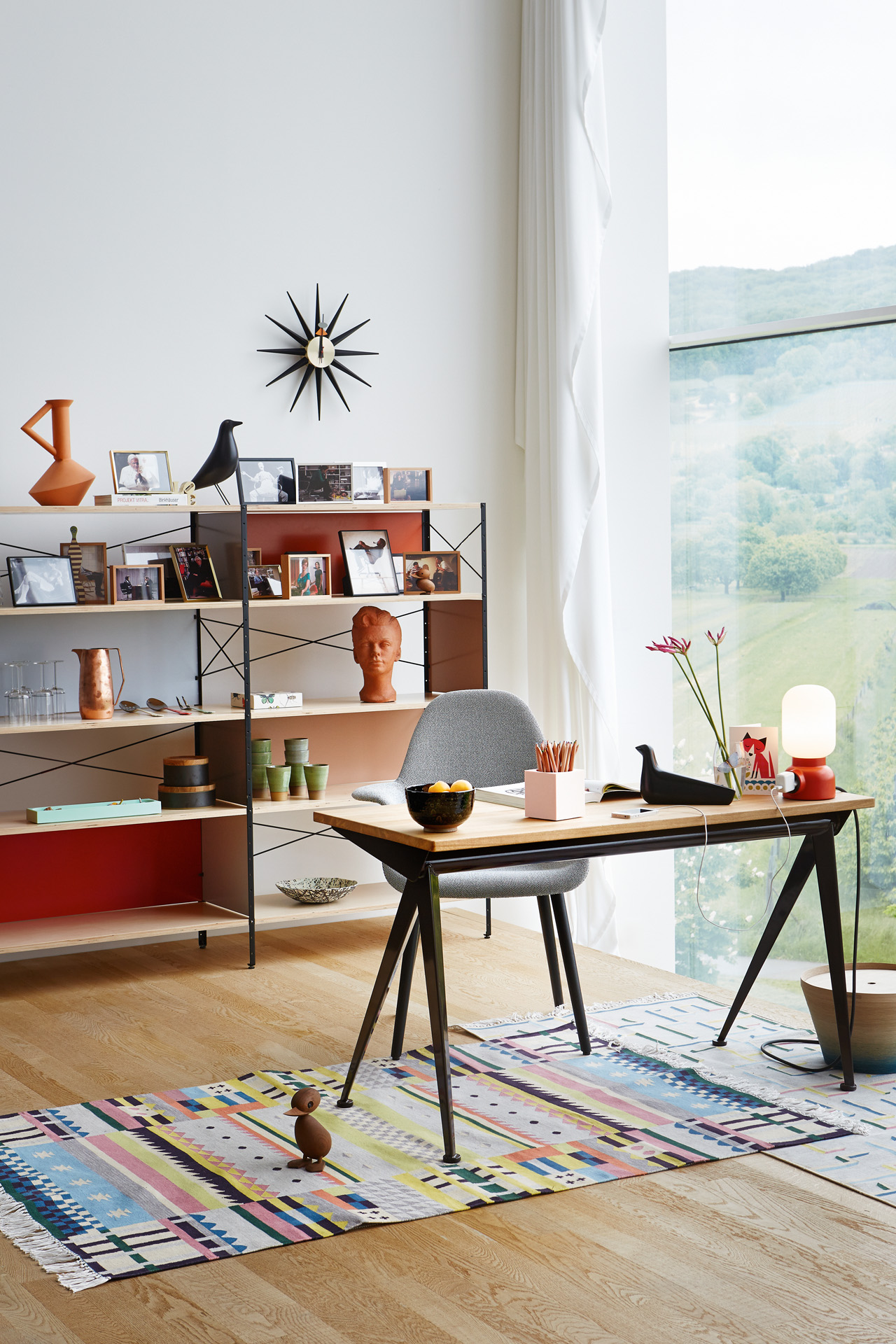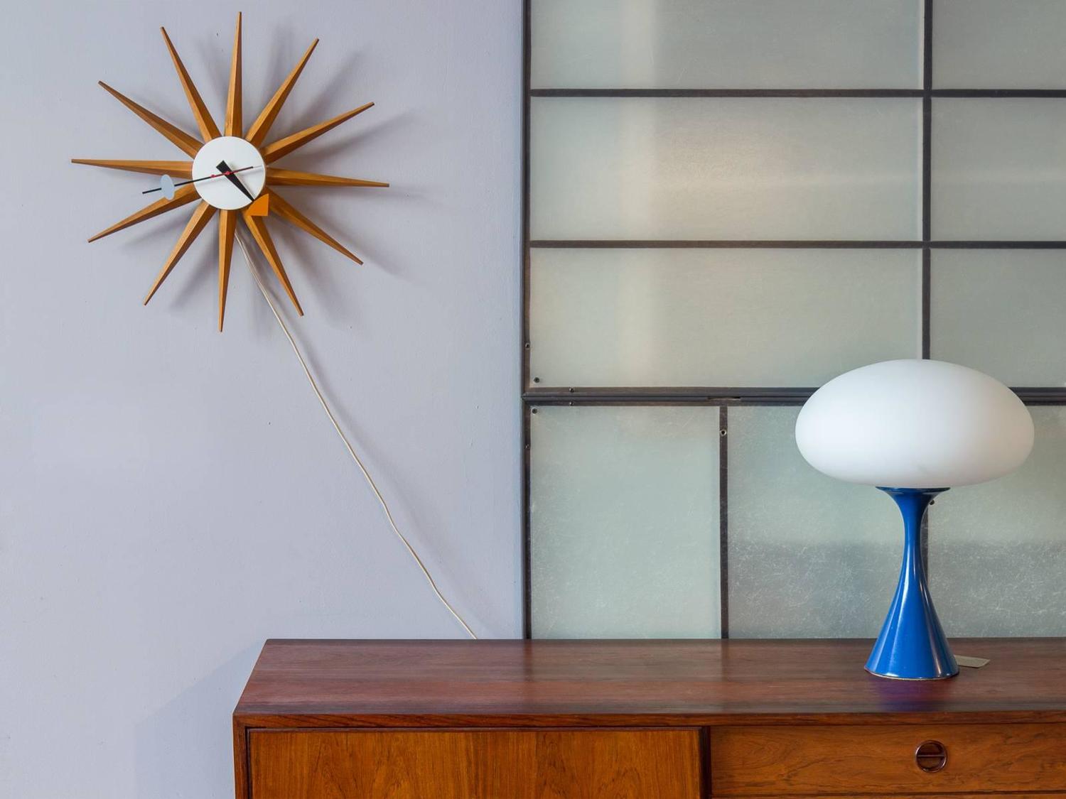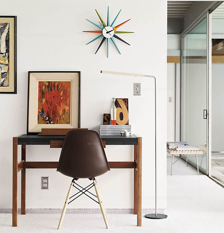 信仰进步和日益增长的经济繁荣是1950年左右美国生活方式的核心方面。一切似乎都有可能,人们努力做到“现代”。 为了将现代设计融入美国家庭,乔治·尼尔森构思了各种日常用品:灯具,钟表和其他家居饰品。 直到20世纪70年代,尼尔森办公室为家庭创造了许多不同的物品,包括泡泡灯和球钟,它们成为了本世纪中期现代设计的象征。