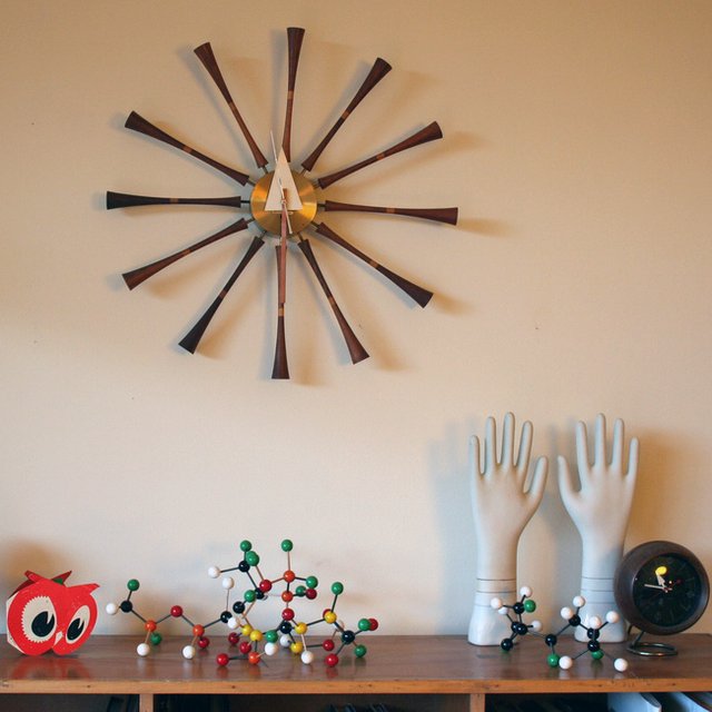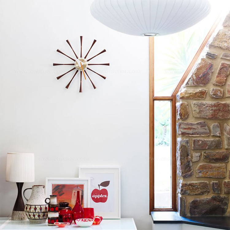 信仰进步和日益增长的经济繁荣是1950年左右美国生活方式的核心方面。一切似乎都有可能,人们努力做到“现代”。 为了将现代设计融入美国家庭,乔治·尼尔森构思了各种日常用品:灯具,钟表和其他家居饰品。 直到20世纪70年代,尼尔森办公室为家庭创造了许多不同的物品,包括泡泡灯和球钟,它们成为了本世纪中期现代设计的象征。