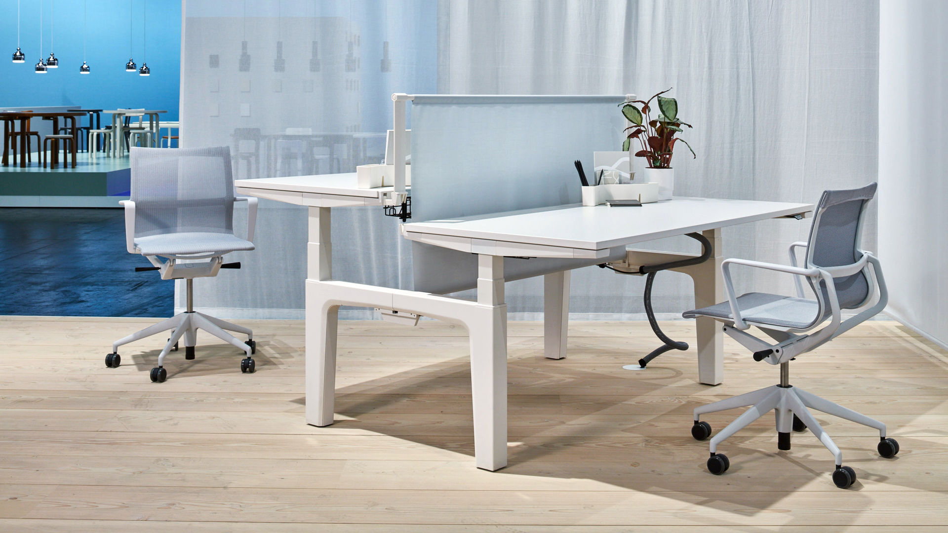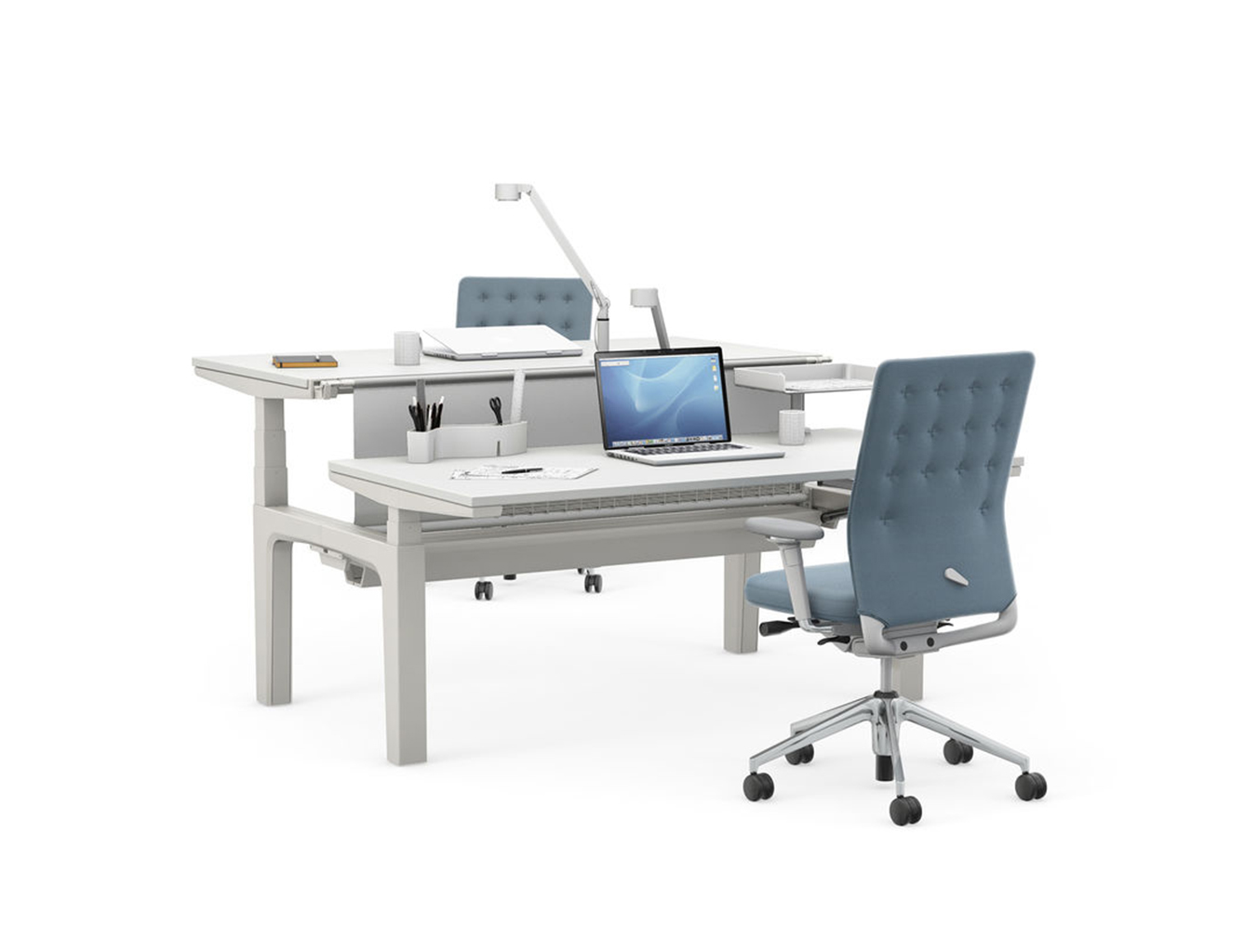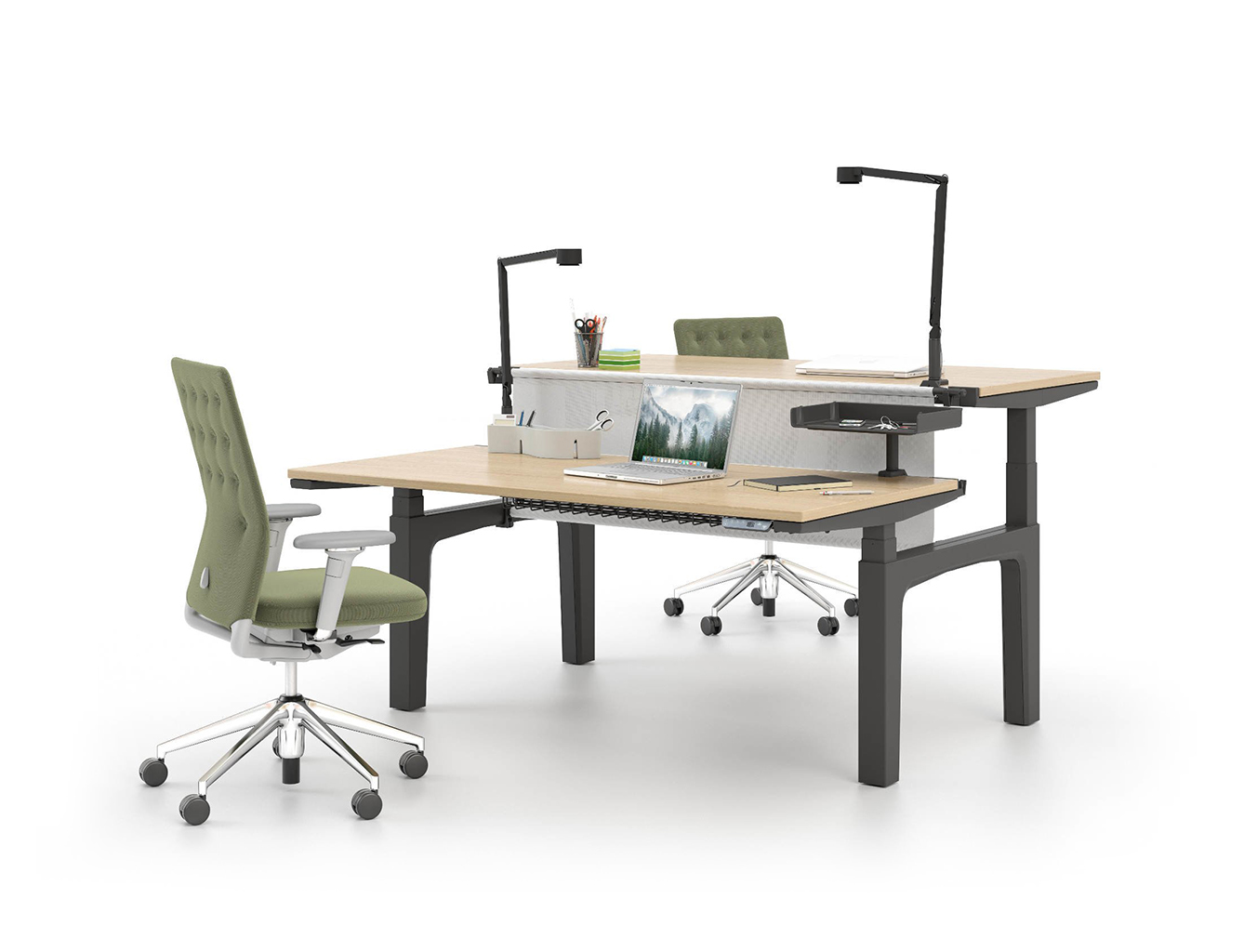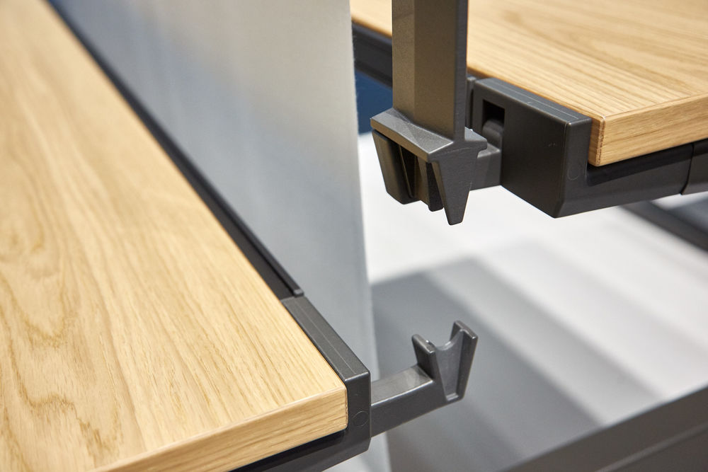 模块化办公桌系统CDS可以配置为单独的桌子,多个工作站的集群,宽敞的工作台或各种尺寸的会议桌。 所有产品均可在固定高度或手动或电动坐式解决方案中使用。 该系统采用标准底座设计,大部分预装有折叠腿。 这使得CDS能够满足对规划,使用,物流,装配和维护灵活性的最严格要求。
