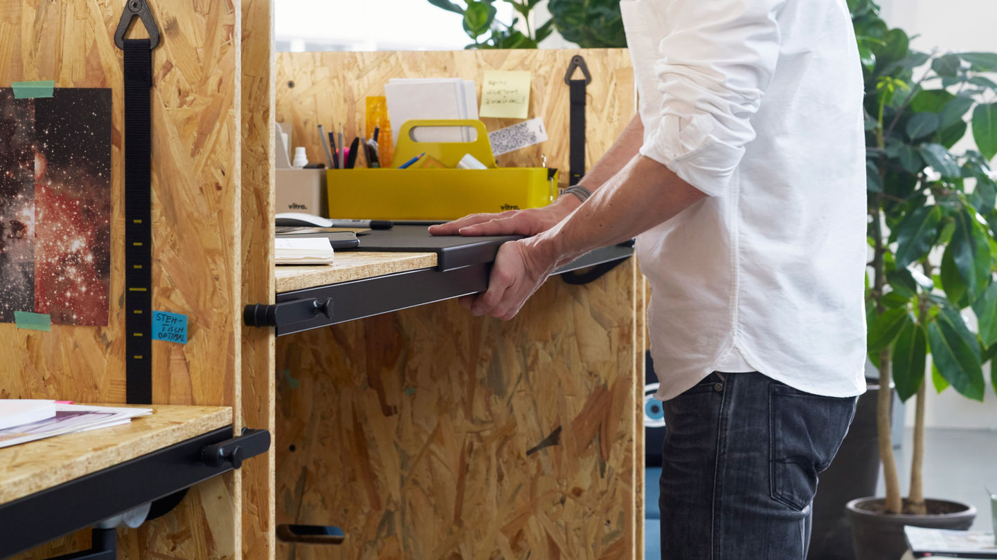 Konstantin Grcic高度可调节的Hack桌面系统采用创新的功能和美学方法对传统办公桌进行反击,以满足当今初创公司和其他年轻,充满活力的公司的需求:Hack可以折叠成一个扁平的“盒子”,只需几个 简单的步骤,以节省空间的方式运输和储存。 用户可以将Hack配置为站立或坐着的桌子或沙发,为工作,会议或放松创造利基。