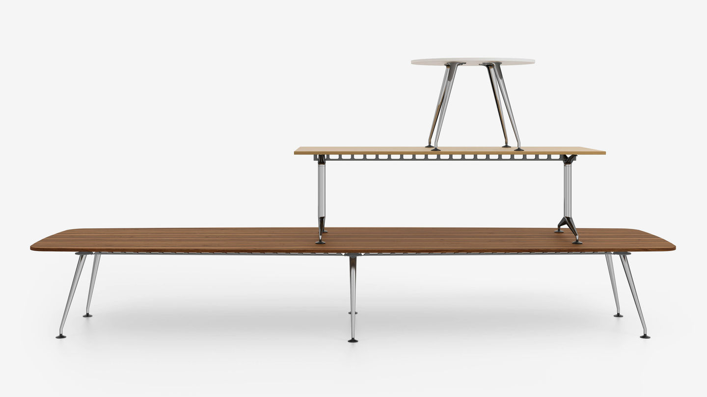 MedaMorph是与Alberto Meda合作开发的,其工程背景在这个着名的会议桌系统的形式和功能中很明显。 简单而精致的底座由星形连接器,可变长度的型材和两种类型的支腿组成,提供模块化选项的构造套件。 除了可配置的访客,会议和会议桌之外,MedaMorph Collection还可以创建任何大小和形状的表格分组。