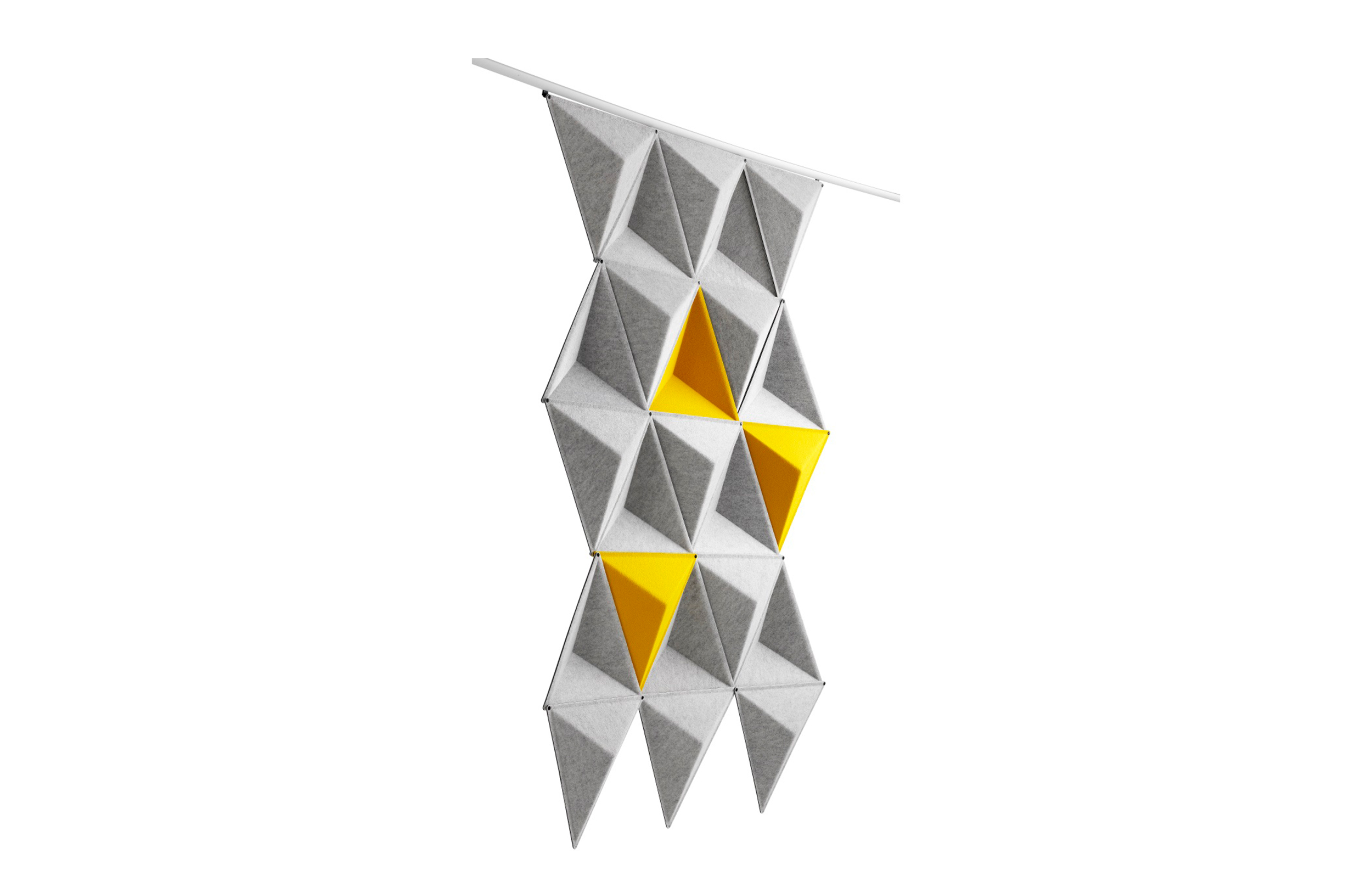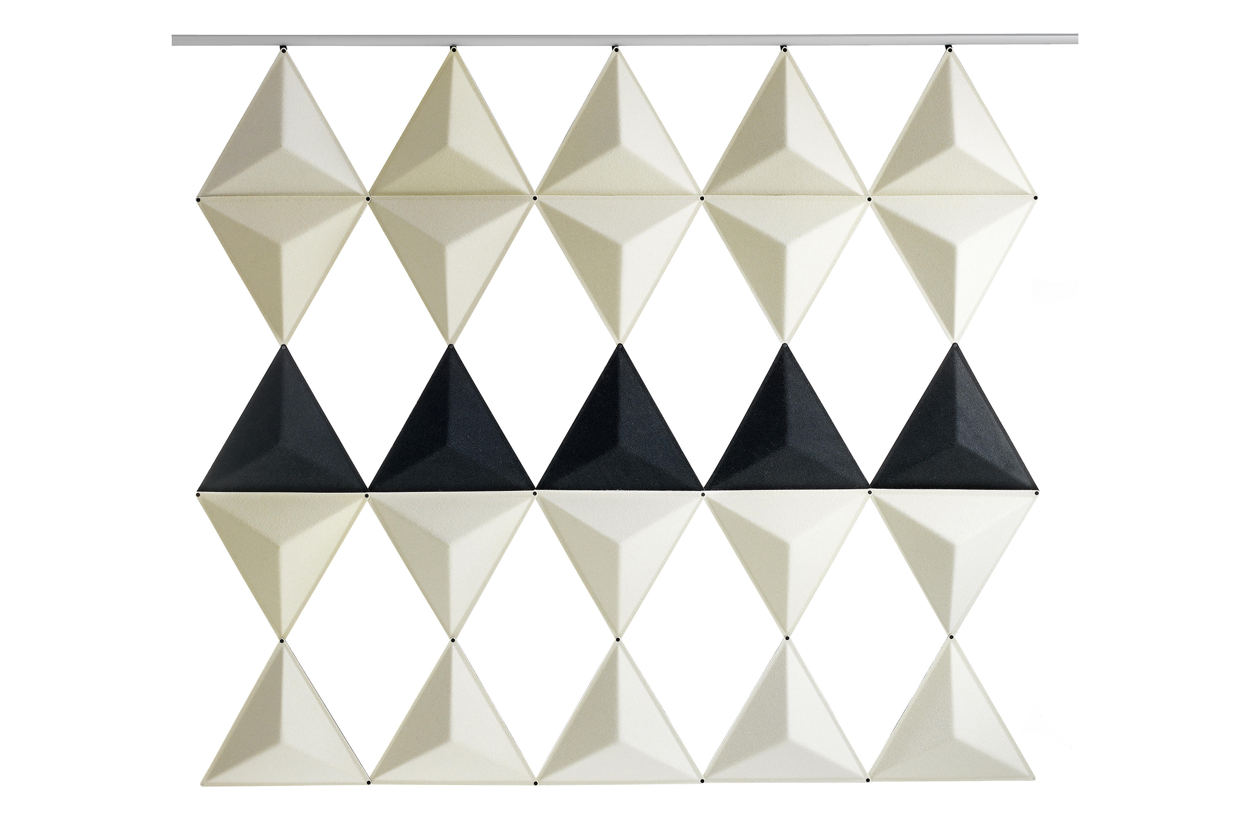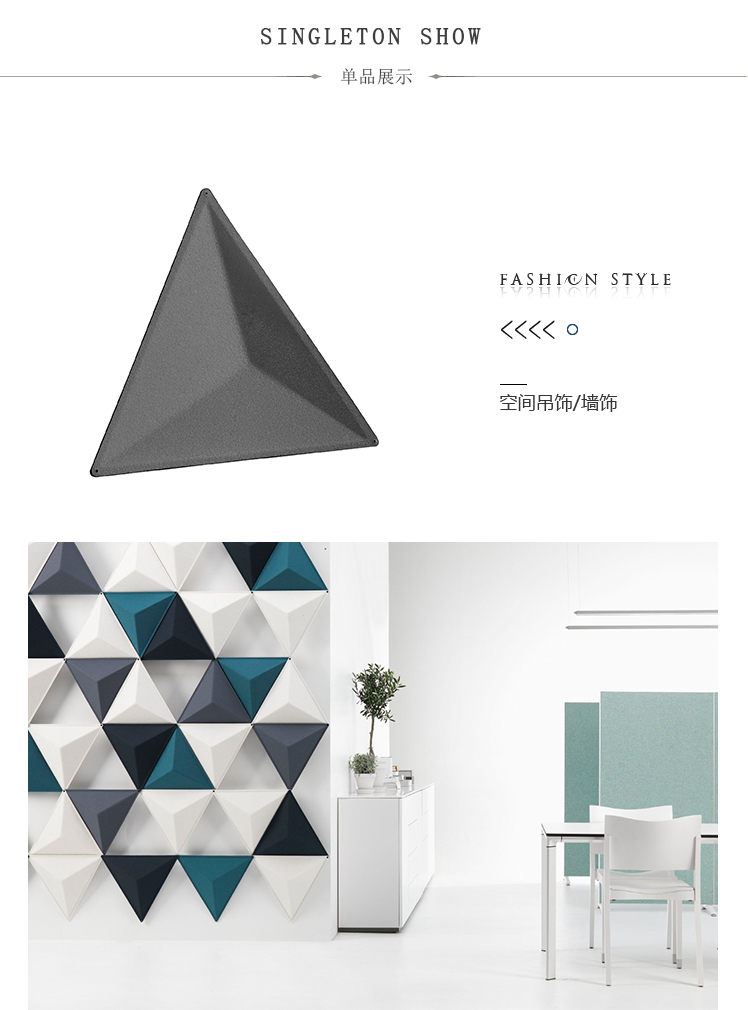 将Aircone与吸音产品相结合,确保出色的音响效果。Aircone包括由模制纤维毡制成的三角形模块。模块可以与剪辑连接以创建不同类型的图案形成。使用白色或银色阳极氧化铝导轨连接到天花板或墙壁。