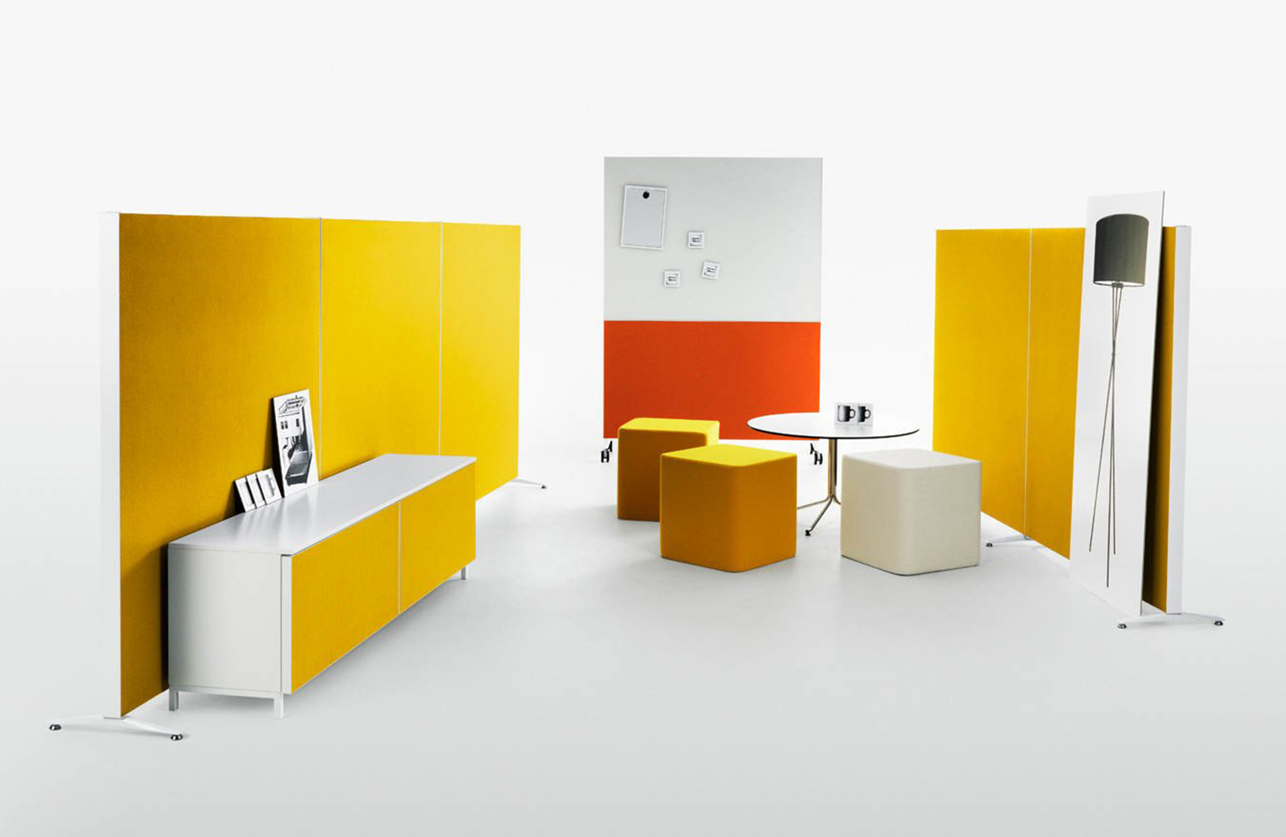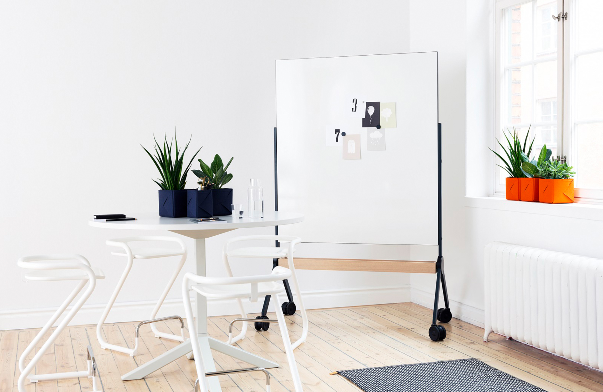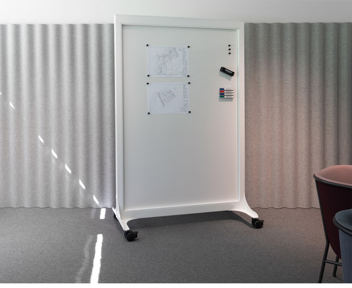 Nina Jobs设计了Alumi Combi和Alumi Combi Light,旨在鼓励同事随心所欲地召开会议。屏幕既可作为吸音器,也可作为书写板,安装在轮子上,便于携带。多功能书写板与Alumi系列中的其他吸音屏幕具有相同的低调外观,使它们能够和谐统一。