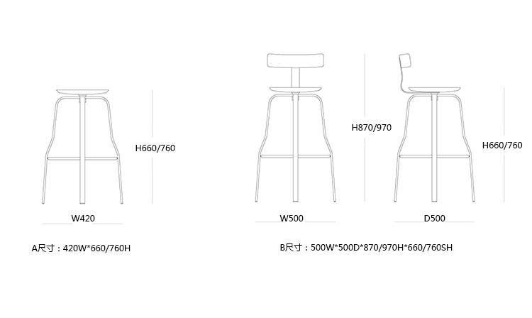 B:500W*500D*870/970H*660/760SH -