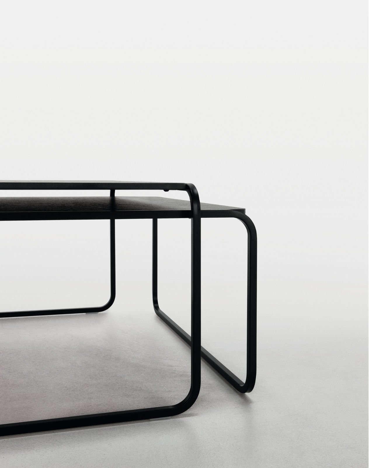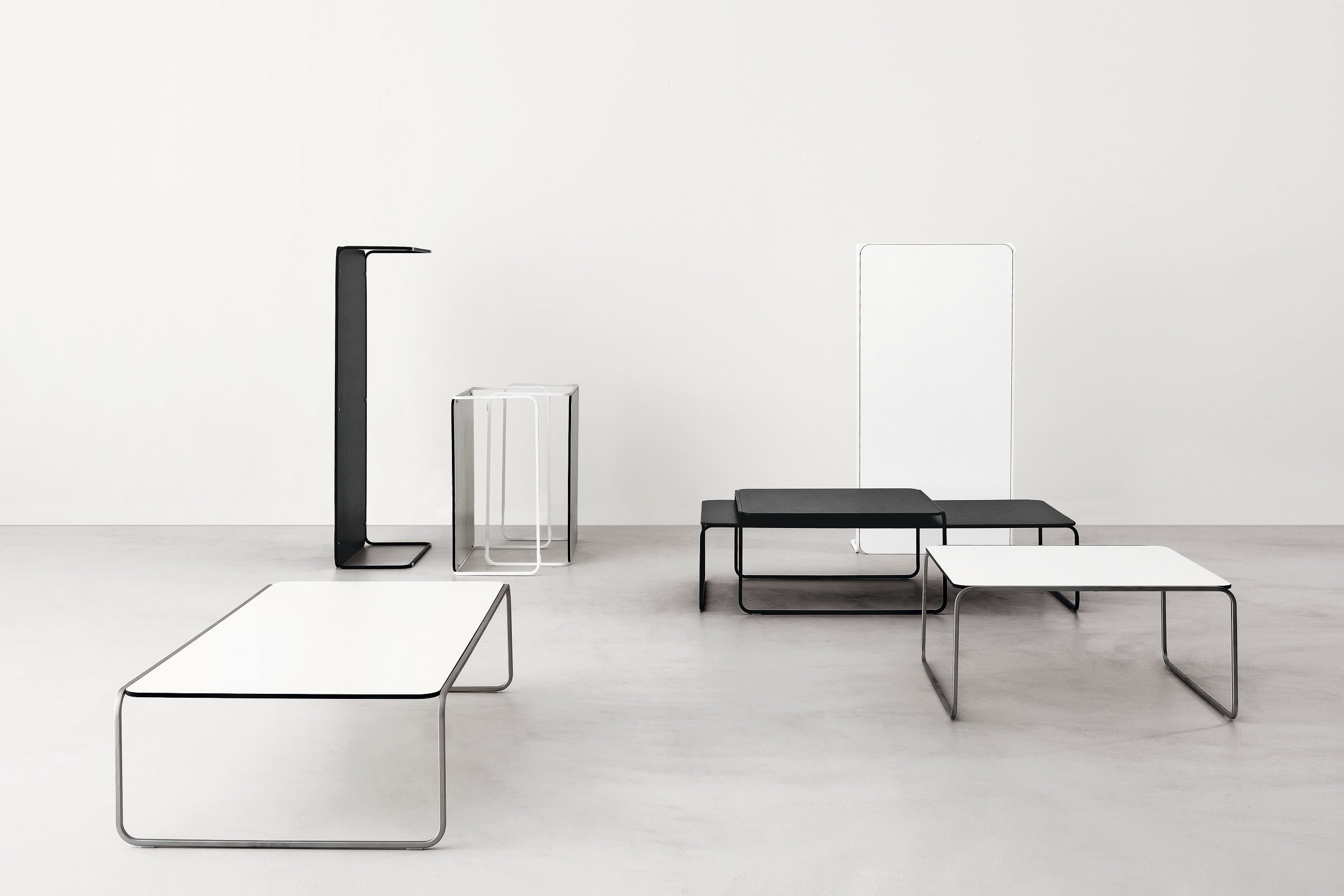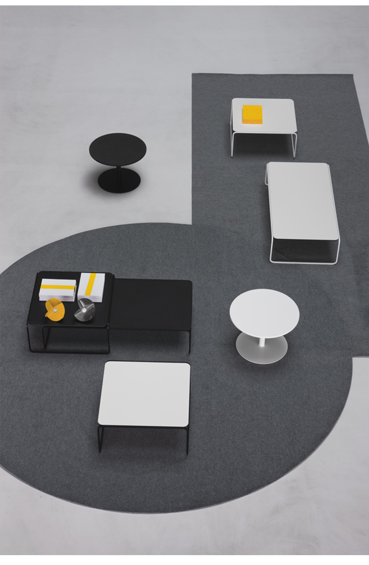 金属管状框架,作为一条丝带,定义和发展了圆型结构的小桌子。因此,金属管状结构,就像丝带一样轻,定义和发展了圆桌的圆形框架。它有两种高度,形状和颜色可以重叠。足以创造一个对话。