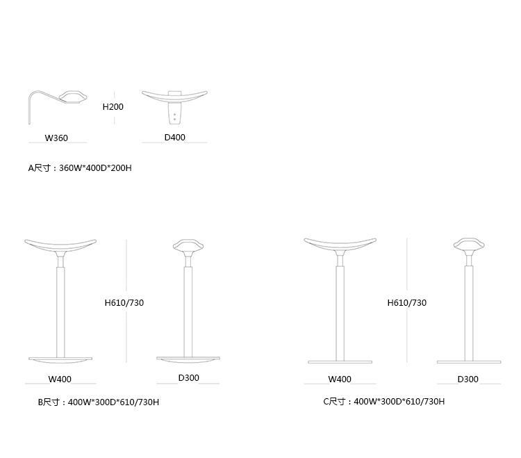 B:400W*300D*610/730H