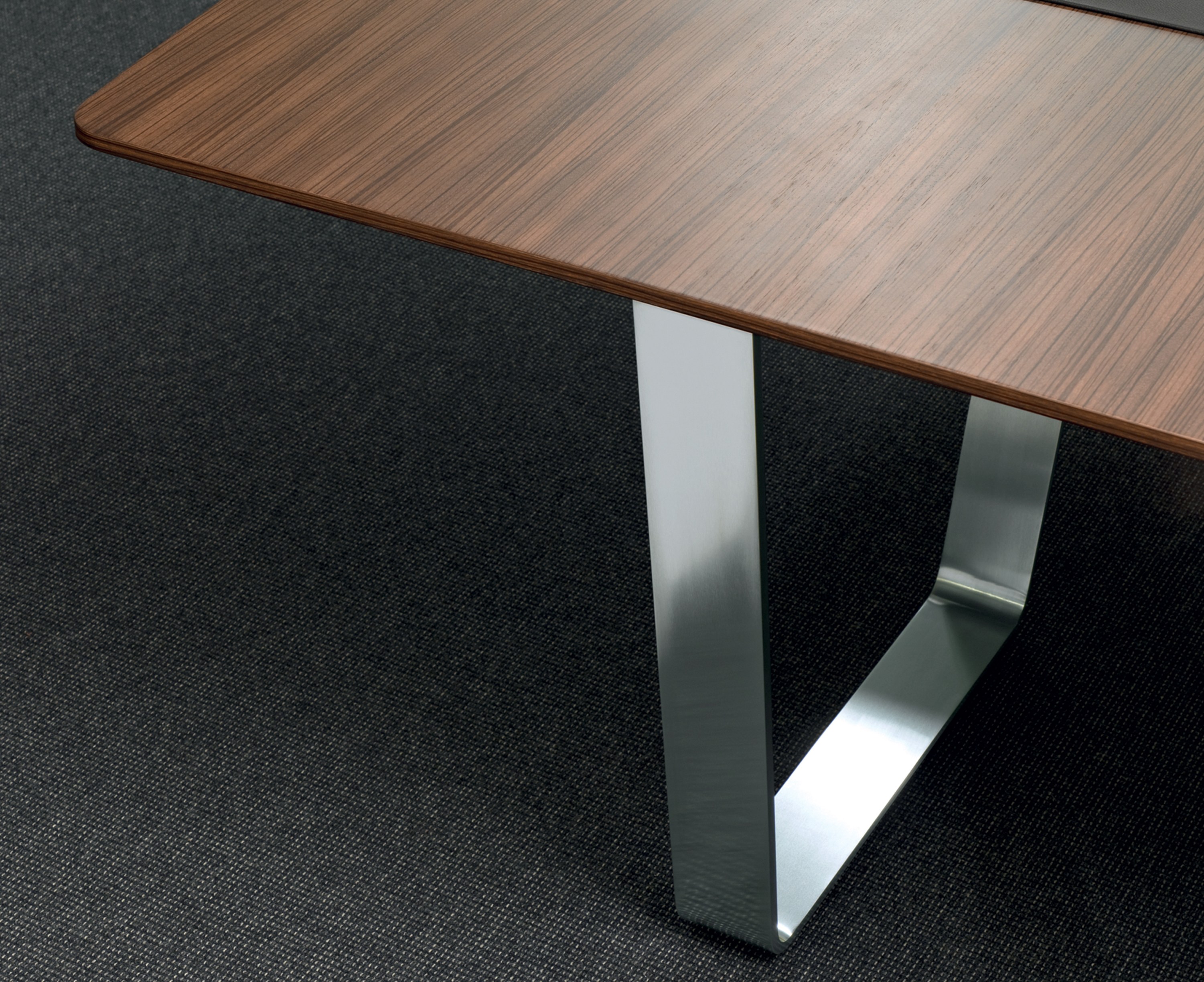 设计师jehs+laub把对德式美学的极致追求融入到设计之中。流畅的桌面木纹拼接、天衣无缝镀铬桌脚处理工艺,让整个产品宛若浑然天成,无懈可击。