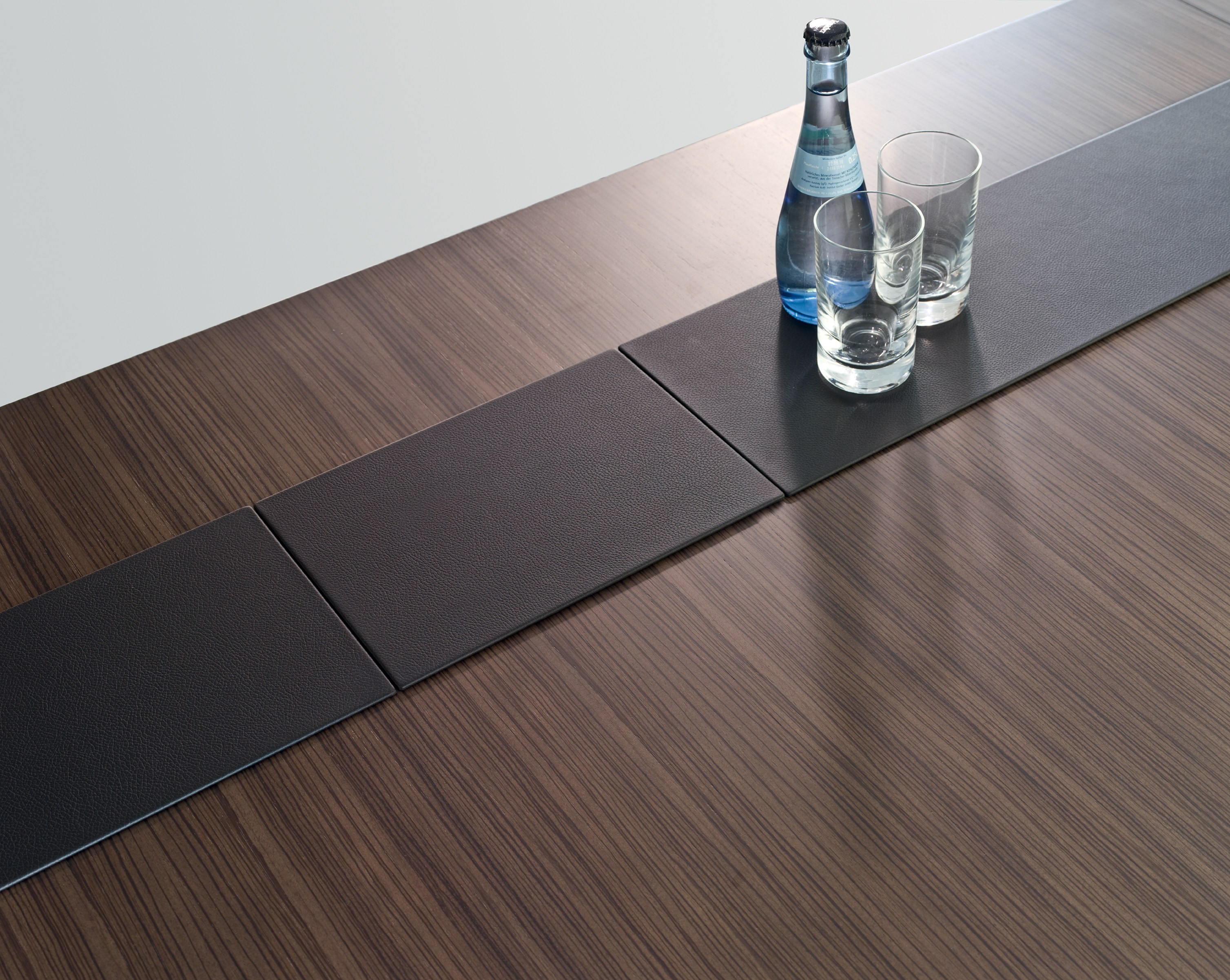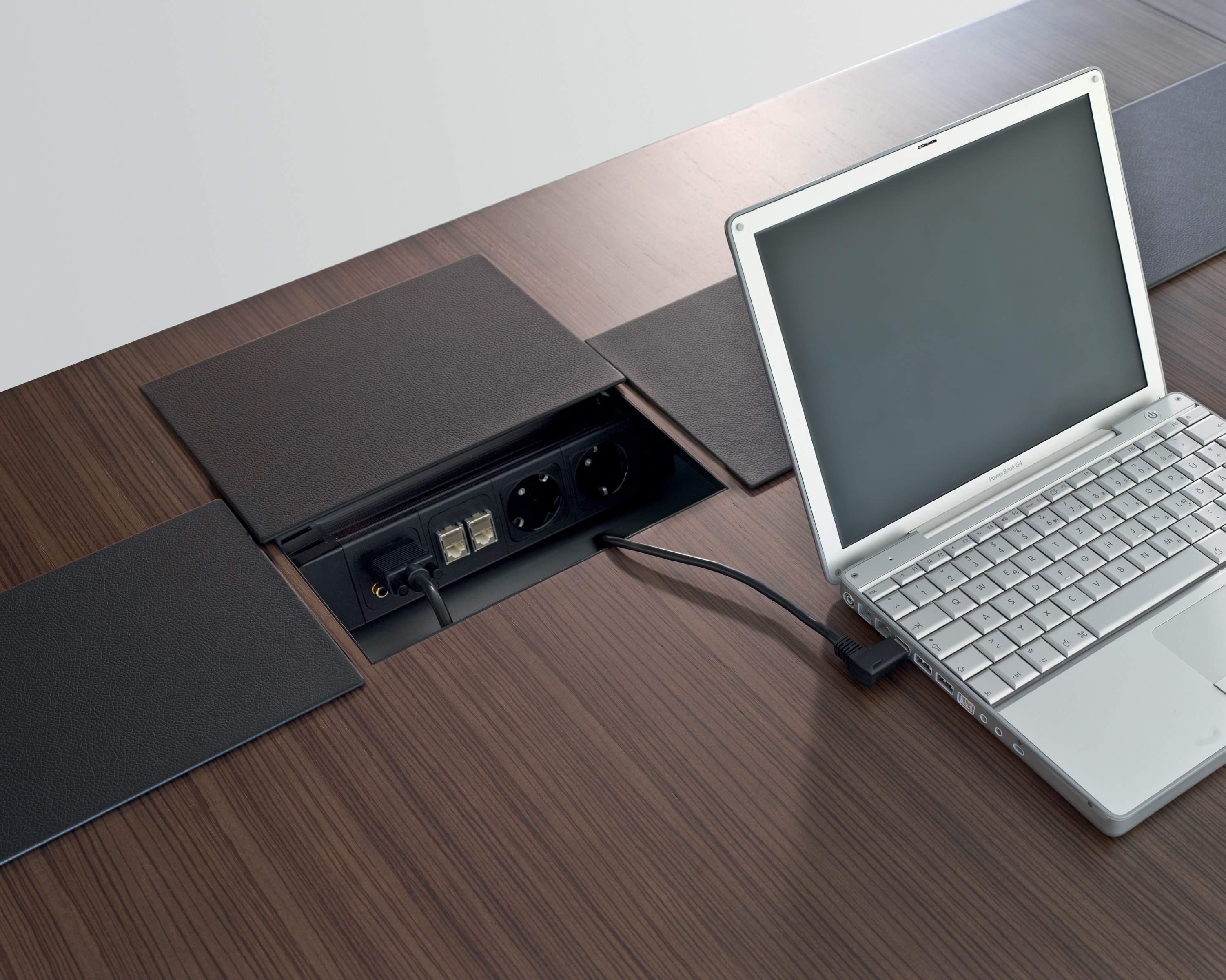 滑动皮革面板使通信技术巧妙地集成在桌面以下的空间