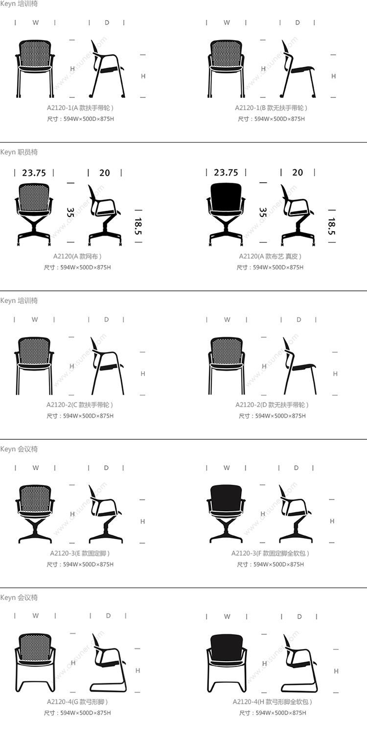 Keyn 培训椅 系列尺寸/示意图