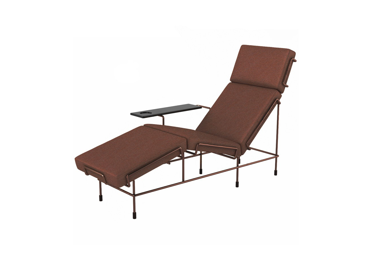 所有的产品均配有膨胀的聚氨酯泡沫垫,在织物或皮革的装潢和粉末涂层金属结构。交通躺椅提供皮革内饰或Kvadrat钢制三层面料室内装潢。每个躺椅都有一个丙烯酸石碑。