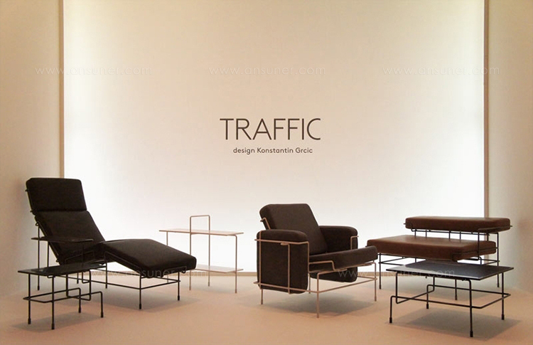 Traffic是一系列使用钢棒和室内装潢的家具。金属线材的三维线图与垫子的几何体积之间的相关性,标志着线材家具的共同内涵发生了重大变化。它的构思朴实无华,给人一种轻松愉快的感觉。精致的细节和精心设计的比例刺激了响亮的优雅。构造的内在逻辑创造了一种正式的语法,允许一些功能上的衰落形成交通集合:一张扶手椅,一张两个座位的沙发,一张小长椅(它也用作脚凳),贵妃椅。