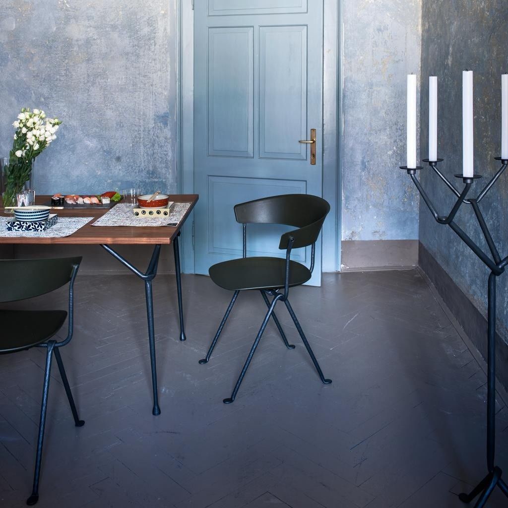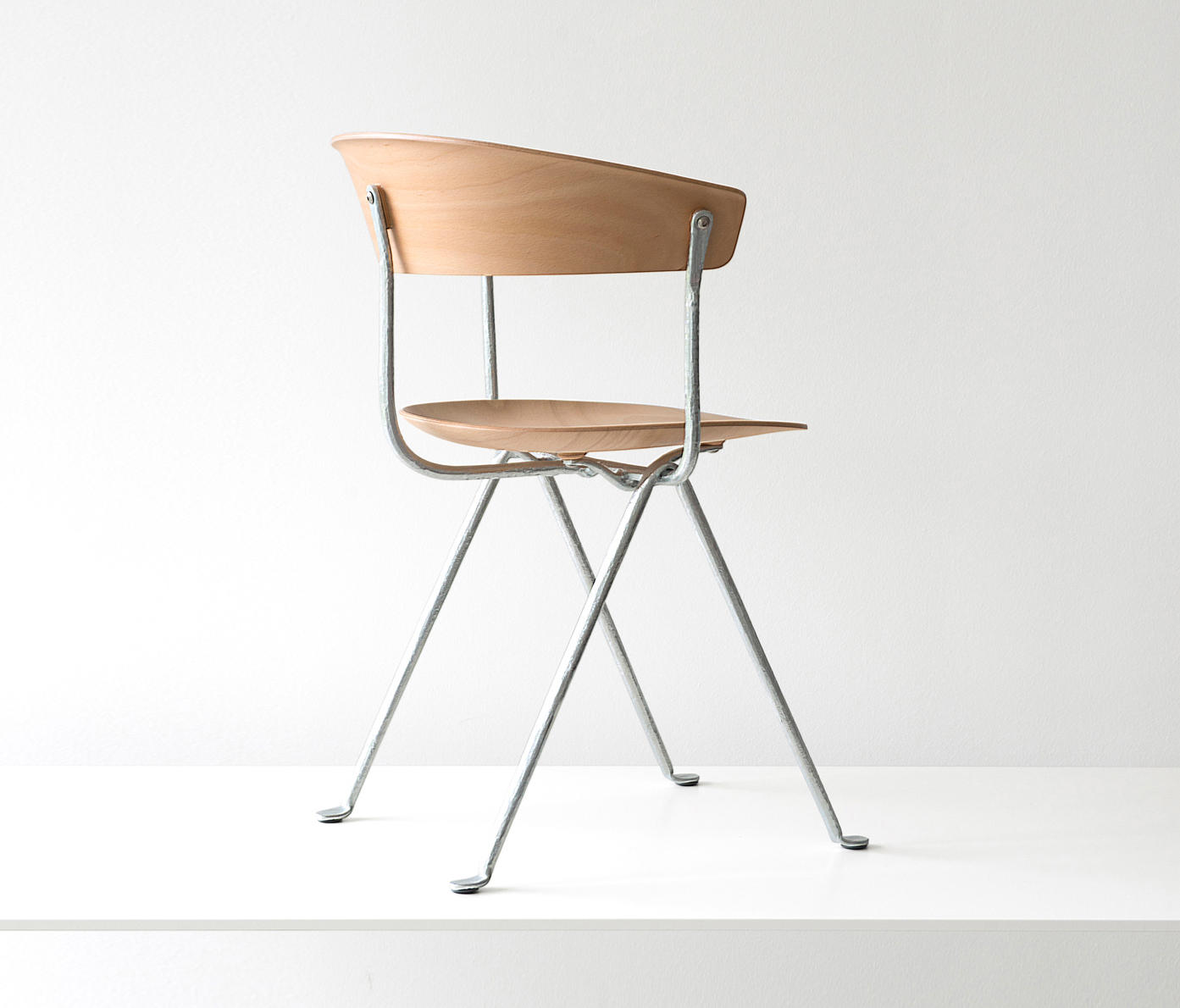 设计师Ronan和Erwan Bouroullec用办公椅庆祝这一古老的滴锻铁工艺。修长的腿是由锻造的铁条制成的,这些铁条在需要的时候被加热、弯曲、挤压或连接。一个轻微弯曲的座位和由聚丙烯或皮革制成的靠背被设置在顶部,创造了一个最小的设计来庆祝锤铁固有的不规则。