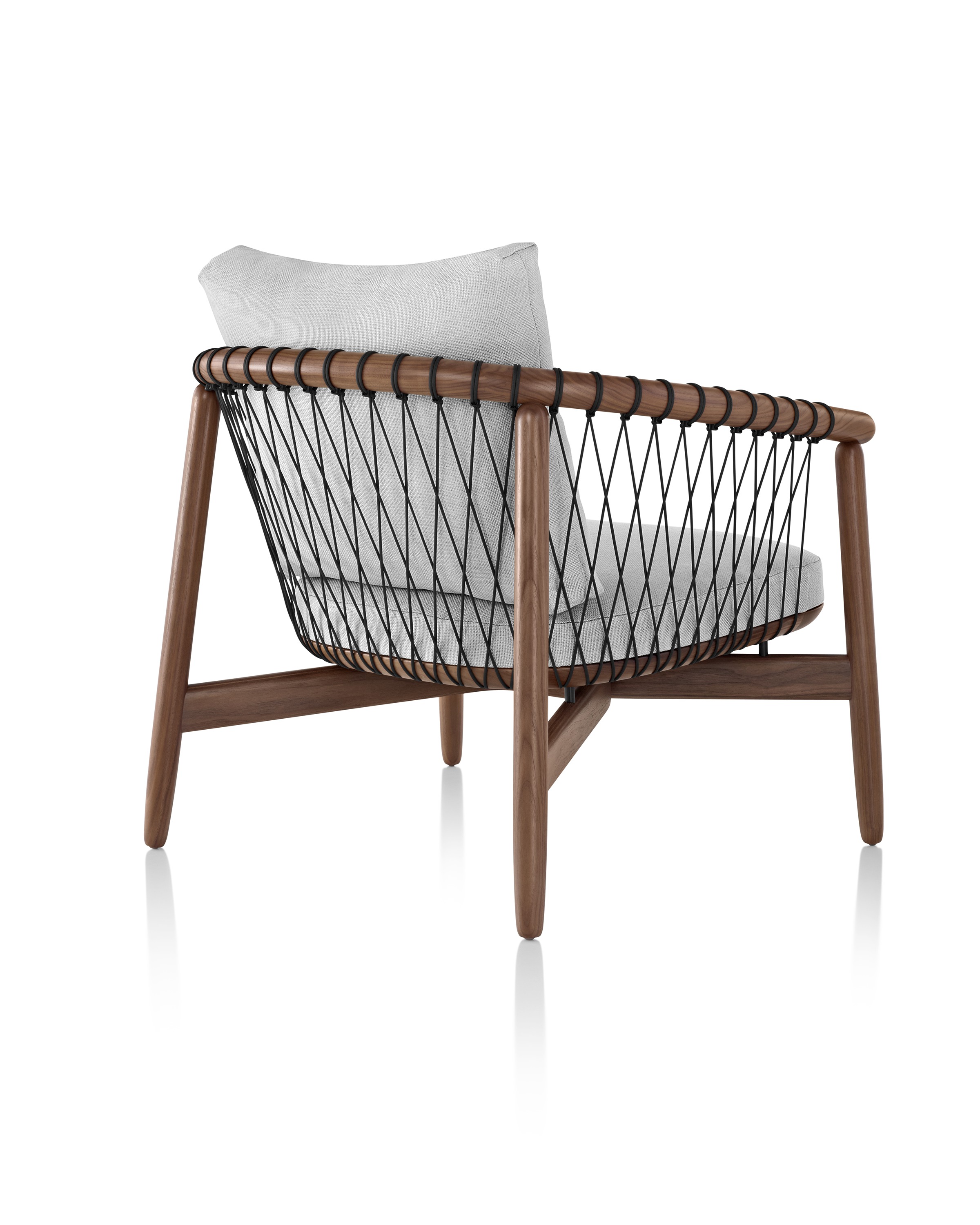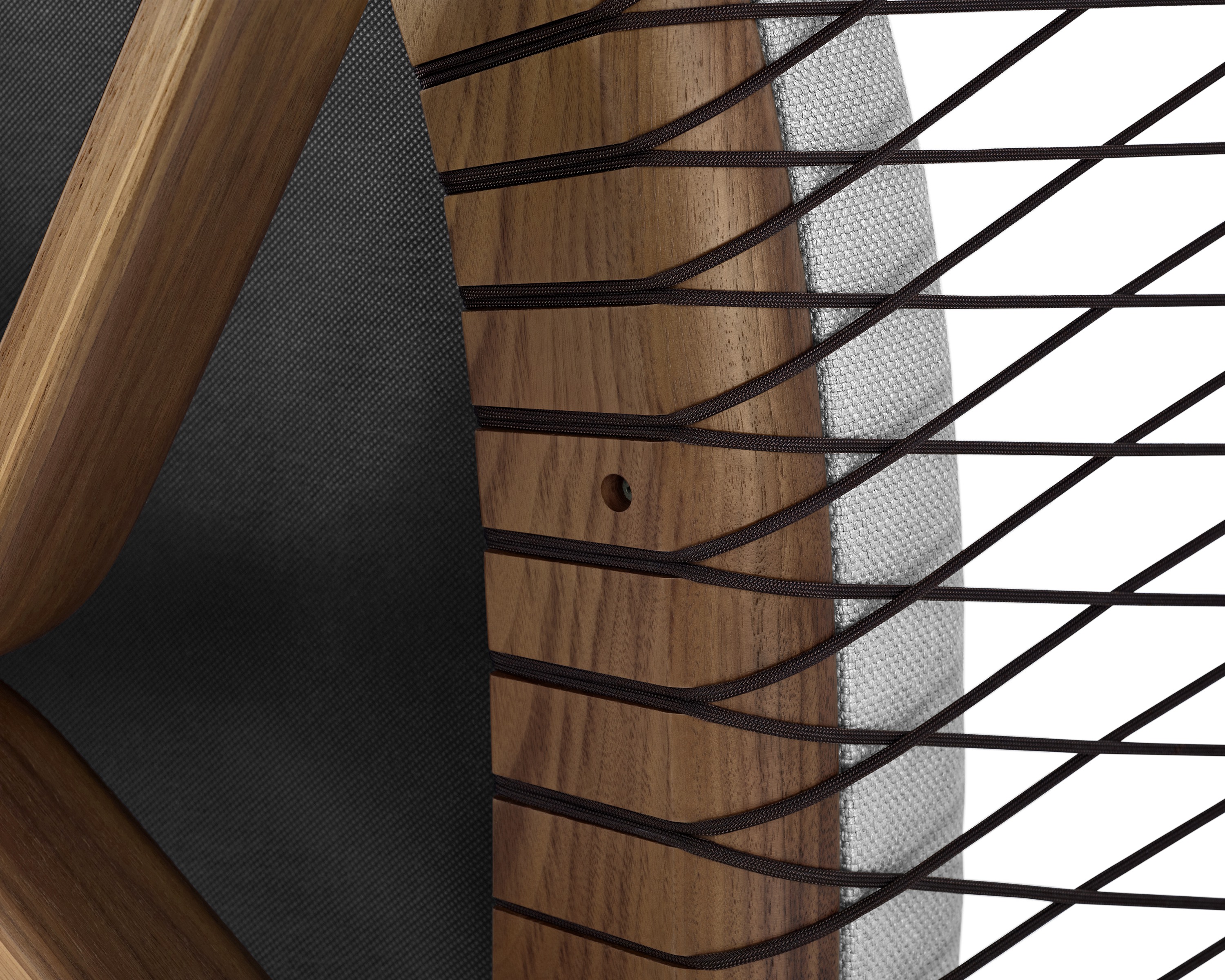 在最大程度上以创造性的方式使用最少的材料,十字头椅采用了手工和技术来达到迷人的精致效果。这把椅子既轻便又透明,非常容易拉起来与桌子边的人聊天,也很容易在鸡尾酒桌周围放松。降落伞绳索有四种颜色可供选择;在一系列盖革纺织品中,框架要么是灰,要么是胡桃。